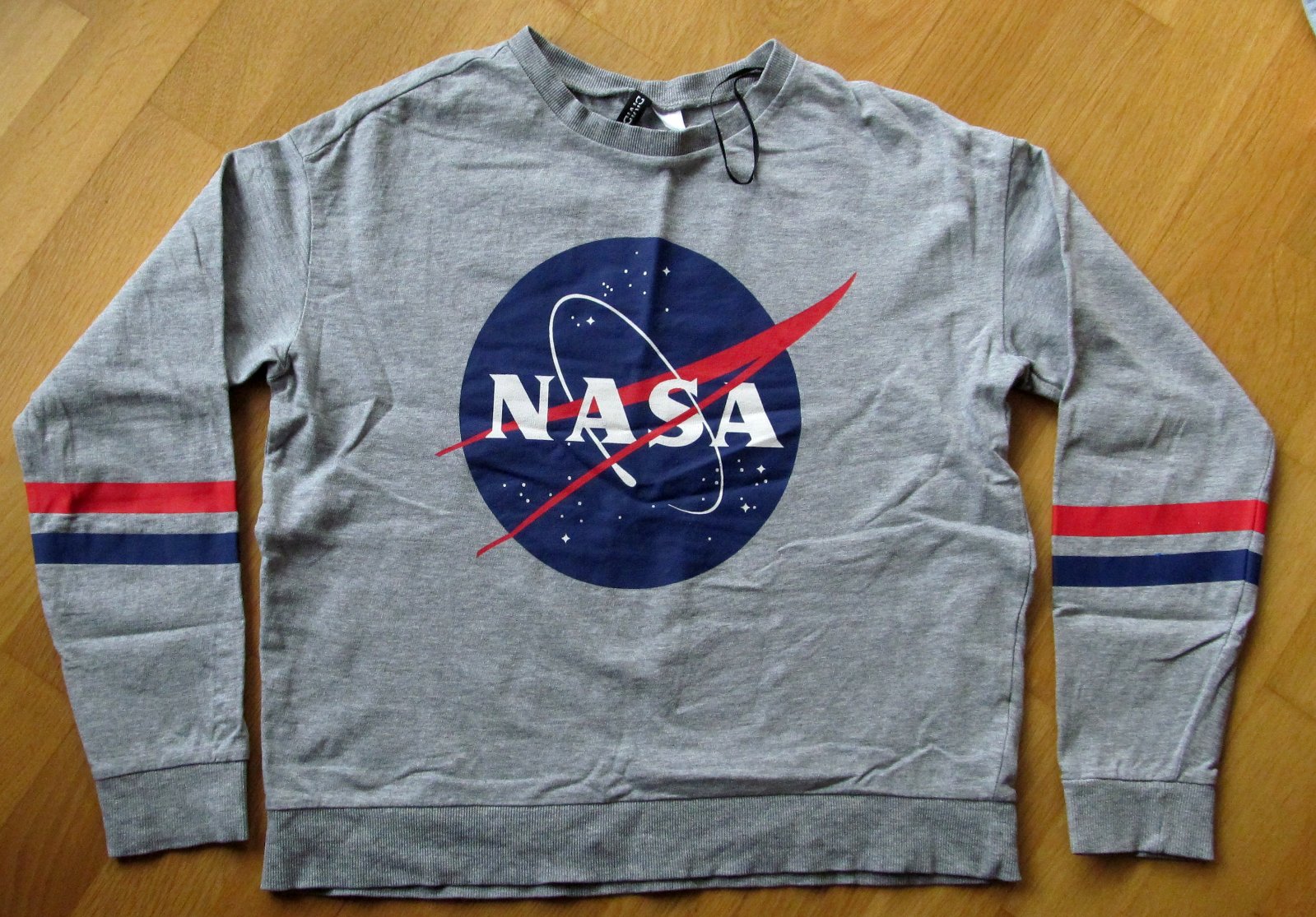 Tenka mikina s potlacou NASA, potlac nie je poskodena, mikina je v dobrom nosenom stave. dlzka od pleca 54,5 cm, sirka pod pazuchou 50, rukav od vystrihu 69 cm