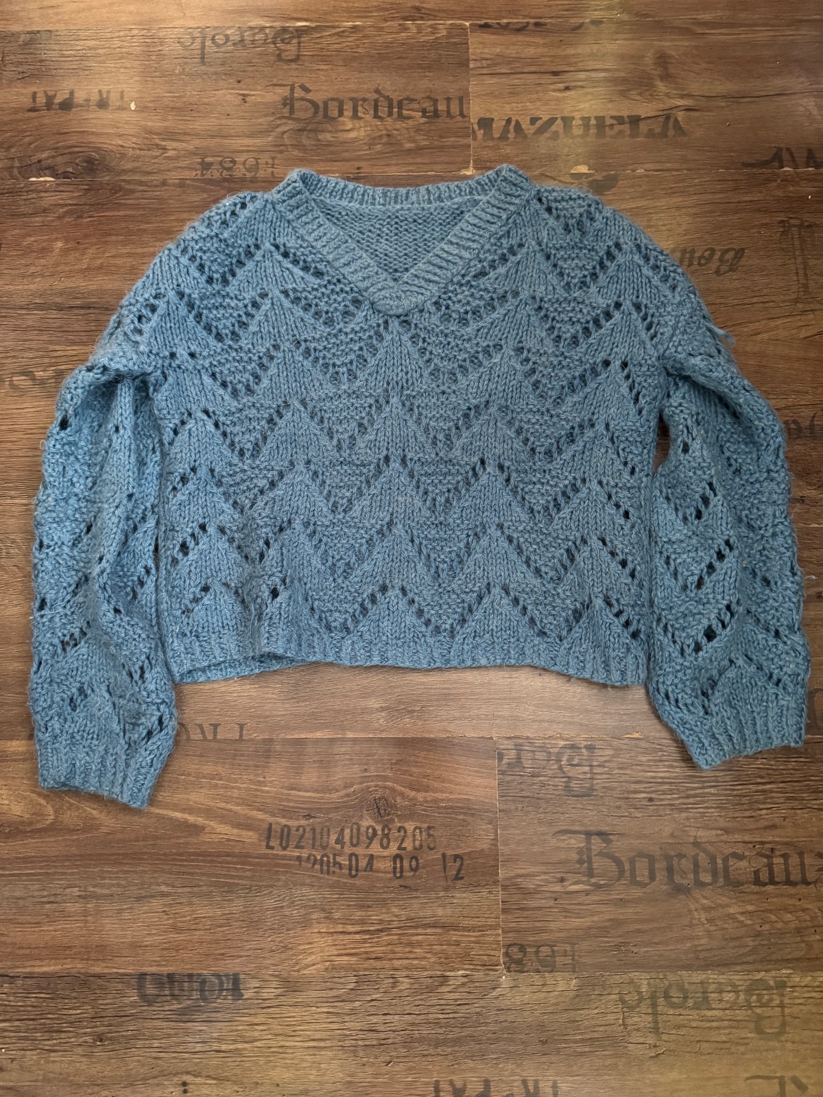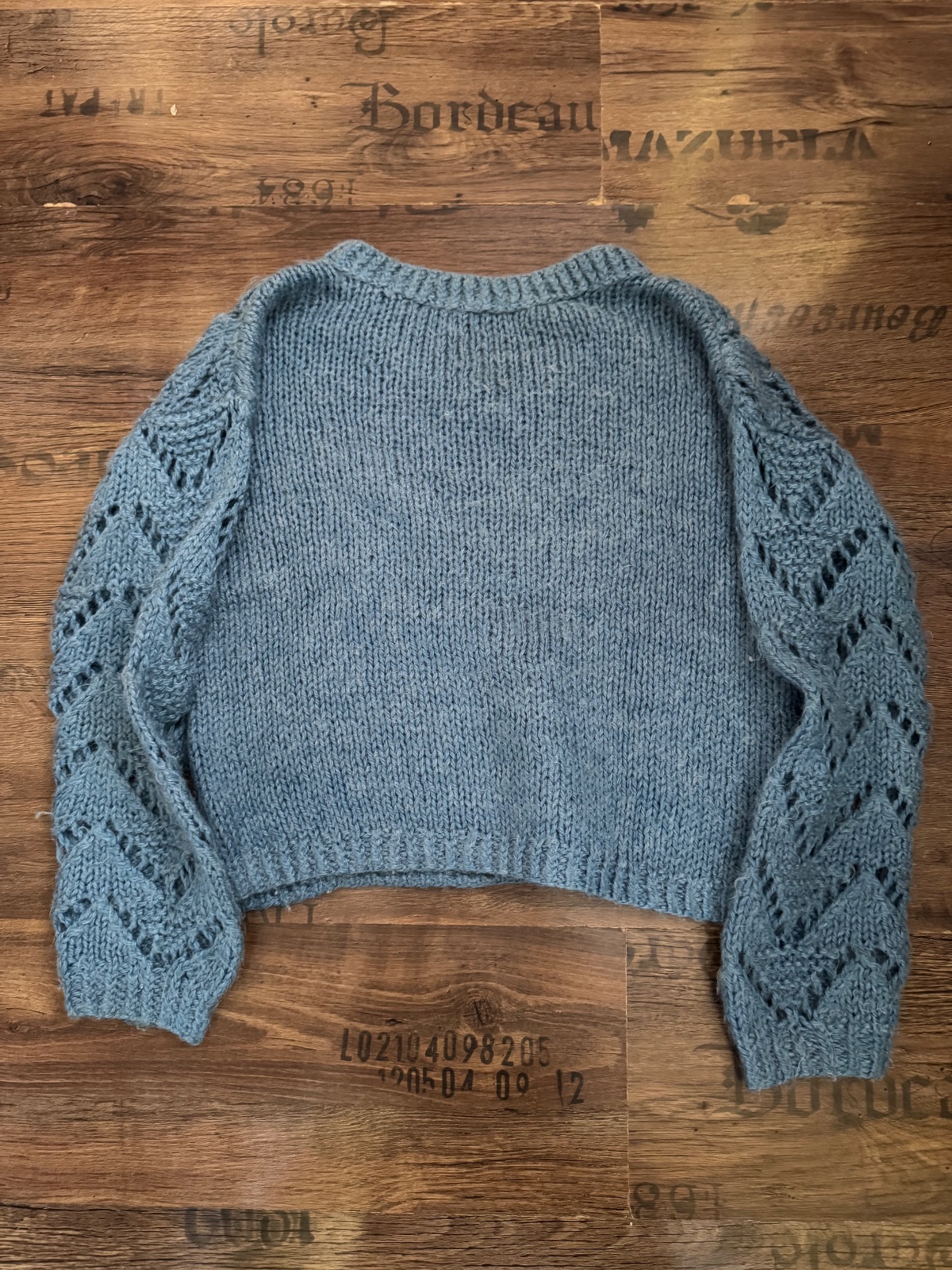 Ponúkam krásny pletený vlnený sveter - robený handmade ešte mojou maminou, už ma veľa rokov, takže už fakt retro. Farba je pekná modrá, stále nadčasový kúsok. Veľkosť je niečo od XS po M ale prikladám aj rozmery. Bol nosený, ale naďalej vo veľmi peknom stave. Poštovné podľa taríf.