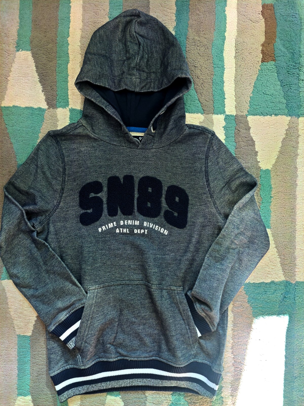 Ponúkam vo veľmi dobrom stave mikinku s klokaními vreckami, na patenty, veľmi príjemný materiál s kapucňou u nás obľúbené. Dĺžka mikiny 63cm, šírka v podpazuší 46cm.