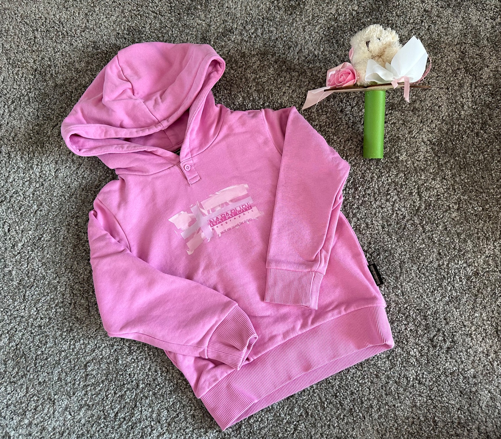 Mikinka nebola nikdy oblecena len visacku manzel hned odtrhol velkost je pisana 100/102 ale teda tak na 4 roky asi