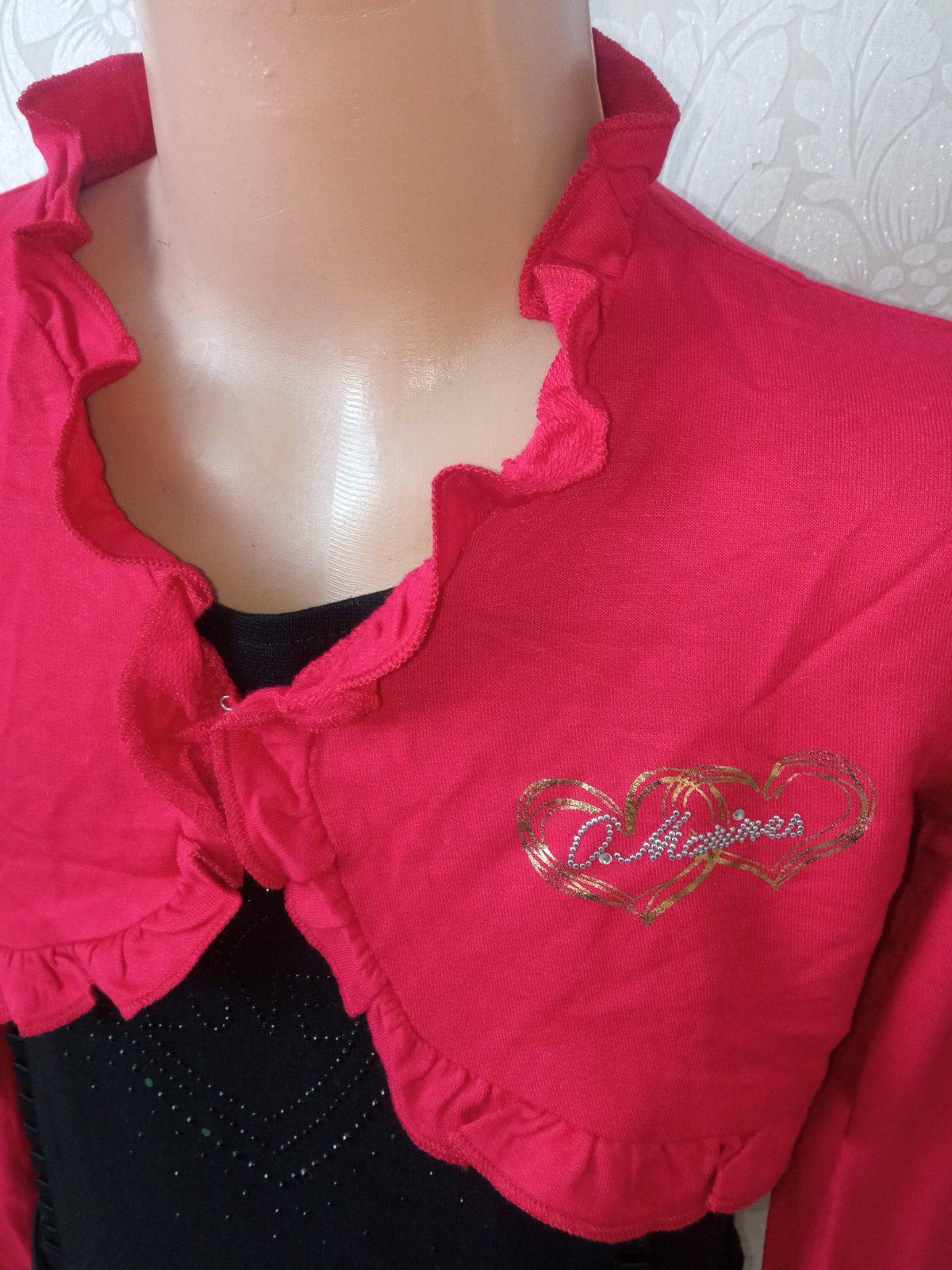Dievčenské bolerko s kamienkami a srdiečkami.