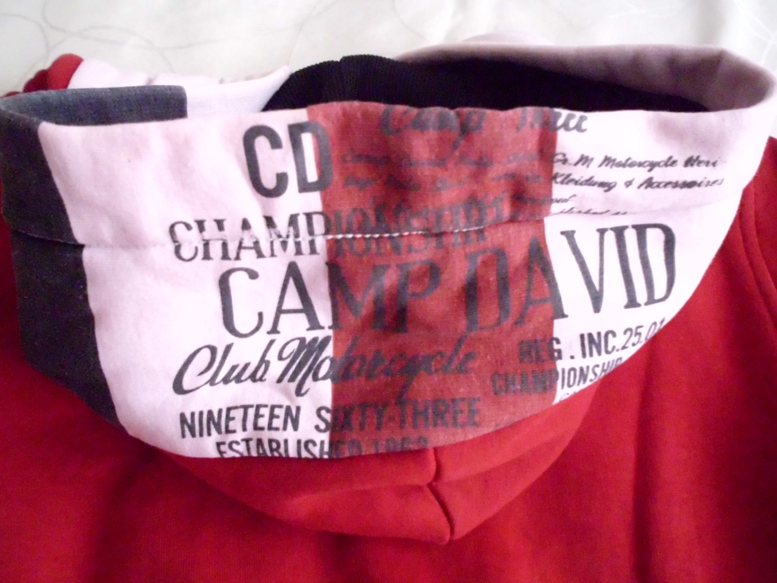 Predám pánsku mikinu-bundu Camp David vel. L ale skôr na M ,šírka 55 cm, dľžka 69 cm, rukáv od pleca 66 cm, hrubší bavlna materiál, 1 vrecko, červená farba, top stav