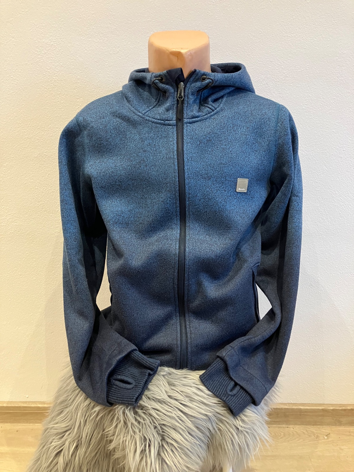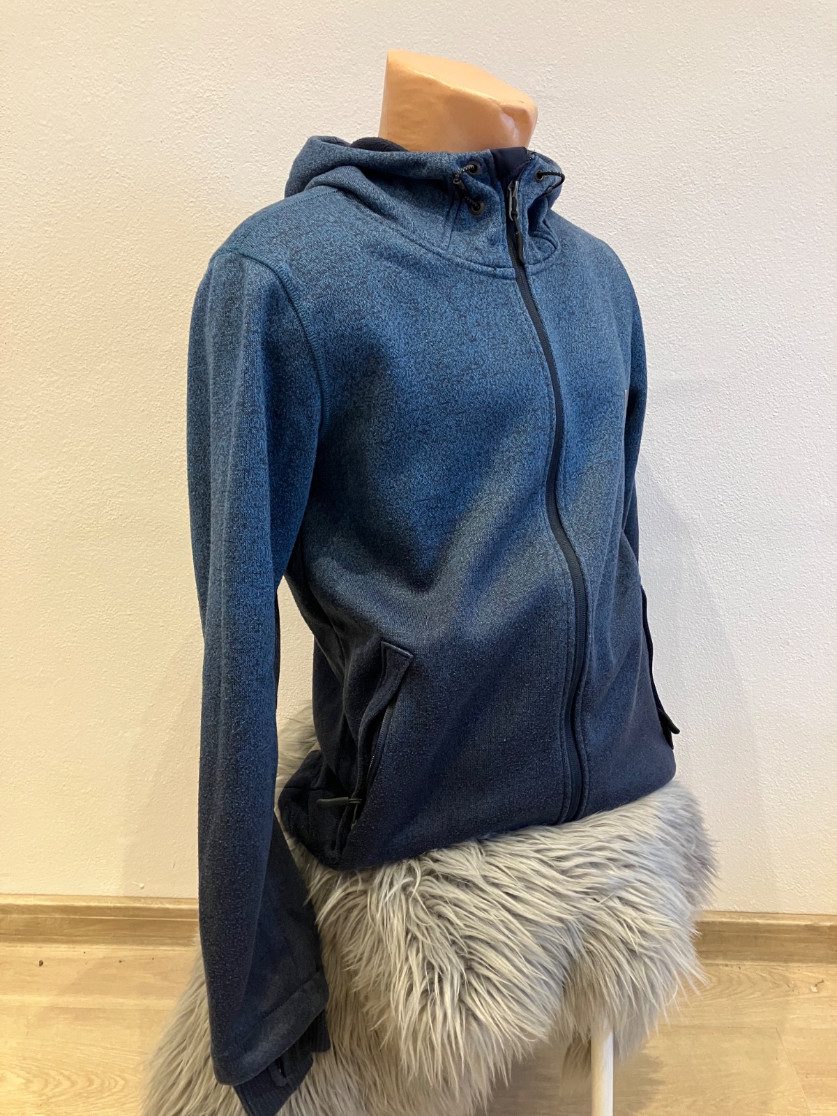 Pánska melírovaná mikina s kapucňou, zapínanie na zips, hrubšia, dve bočné vrecká, elastická.