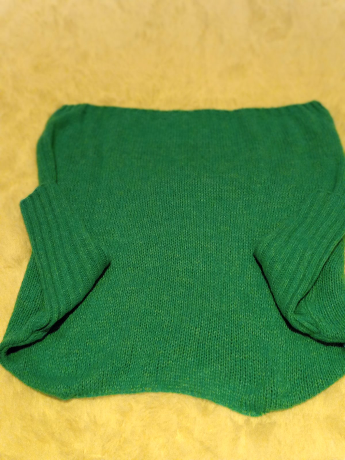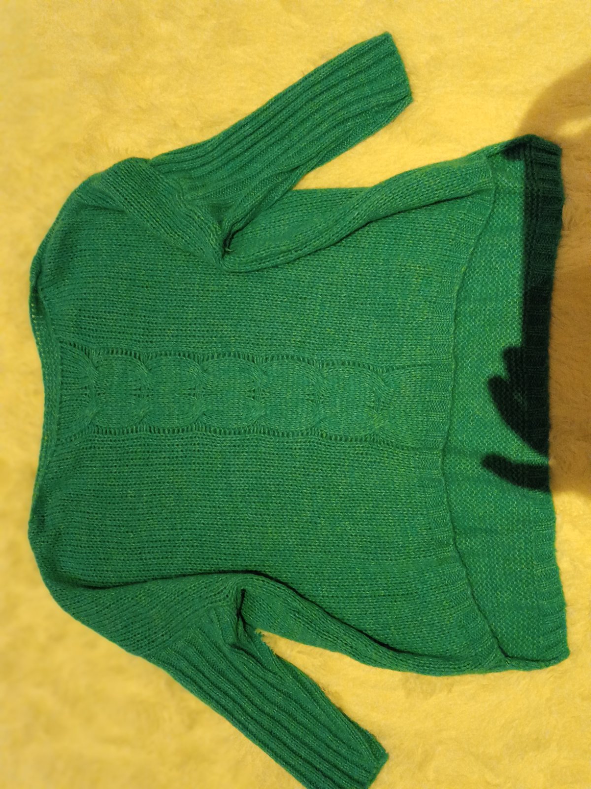 Perfektný pulóver smaragdovej farby. UNI veľkosť, treba sa riadiť mierami! Dĺžka - 58 cm, šírka - 2x 53 cm, rukáv od krku - 72 cm.