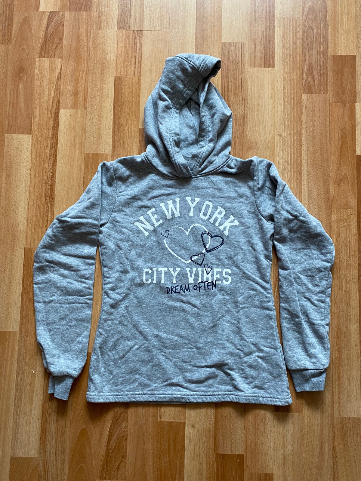 Predám sivú mikinu, veľkosť 158 - 164, známky používania