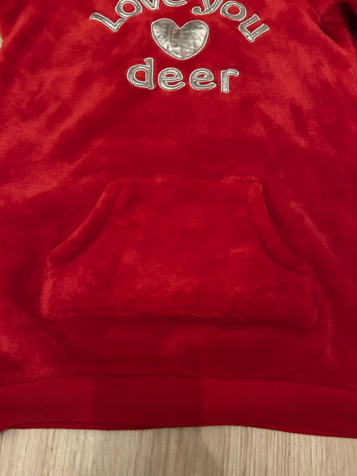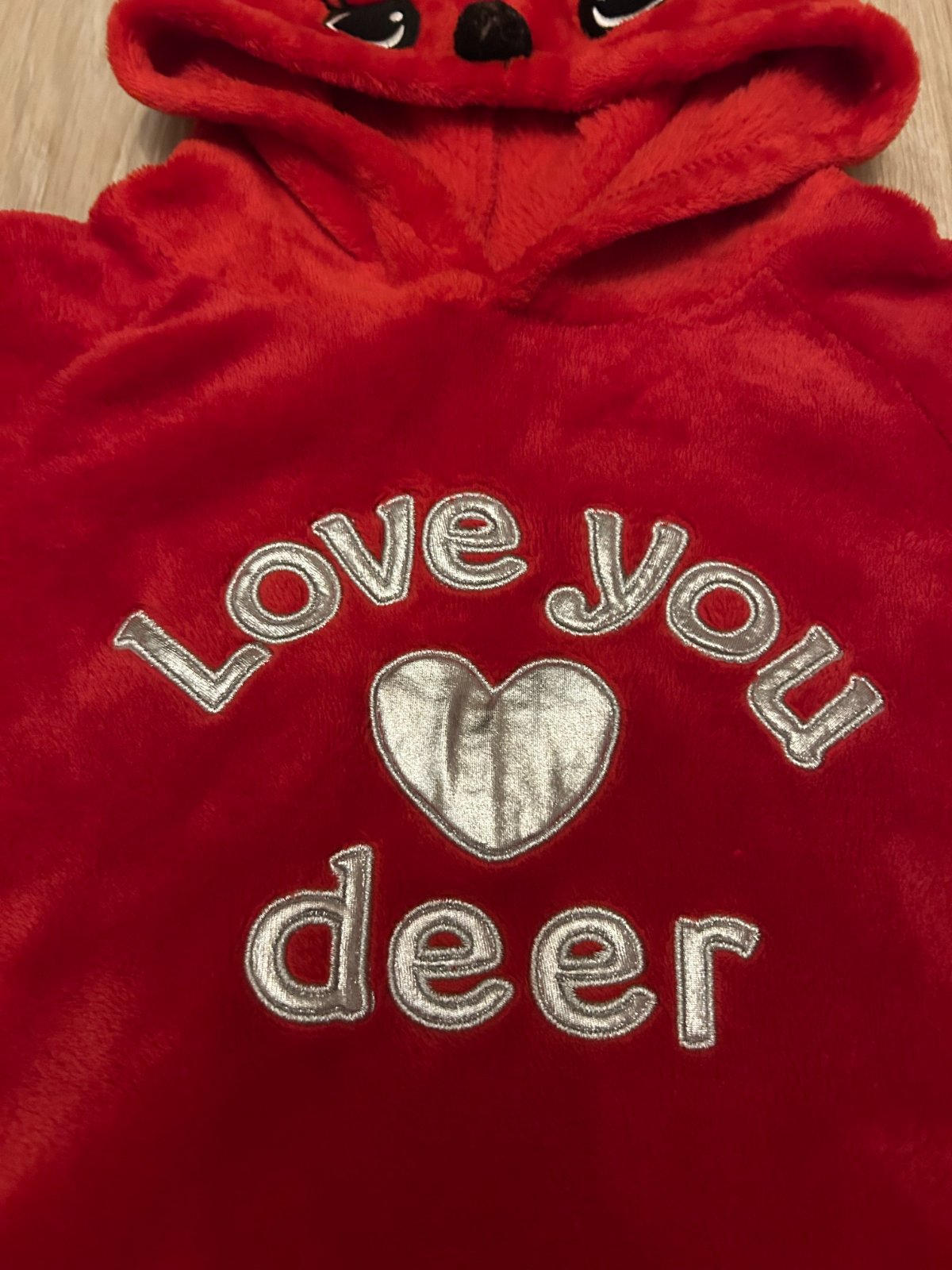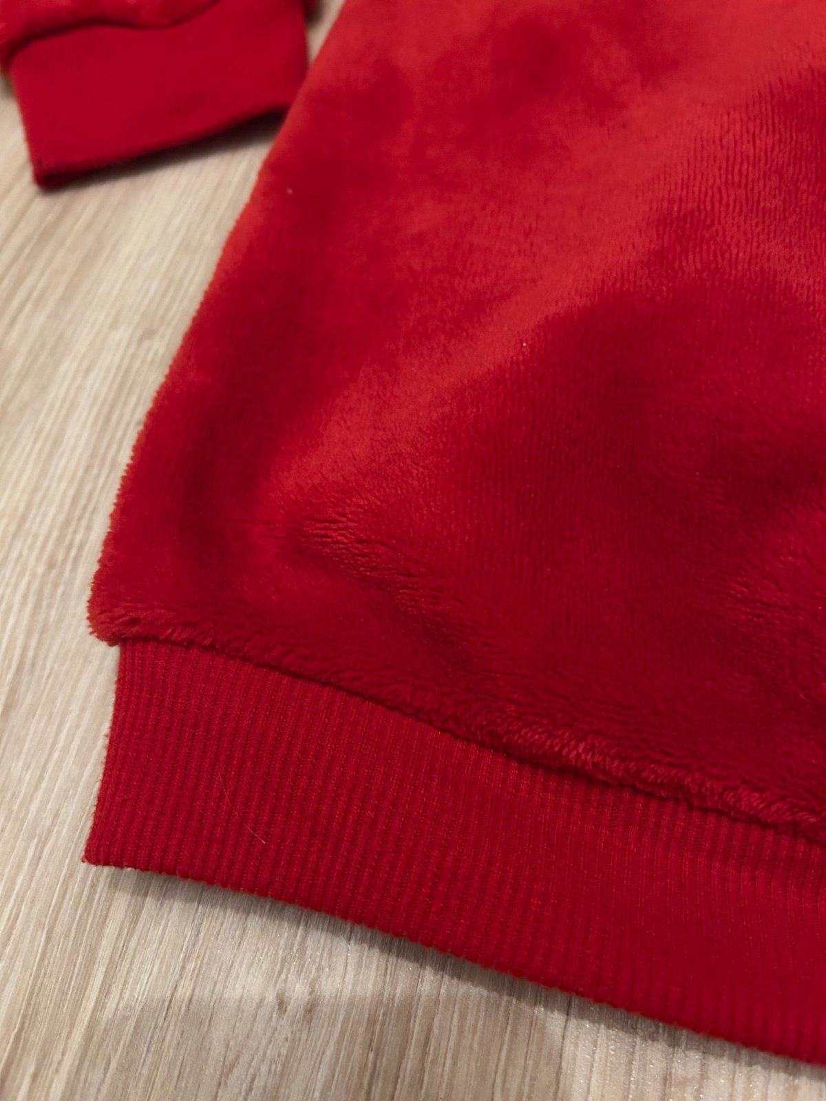 Je to dlhšia mikina s kapucňou z mäkkého flísu s aplikáciami a výšivkou. Má dlhé raglánové rukávy, klokanie vrecko a rebrované manžety a lem. Mäkký a nadýchaný podklad.