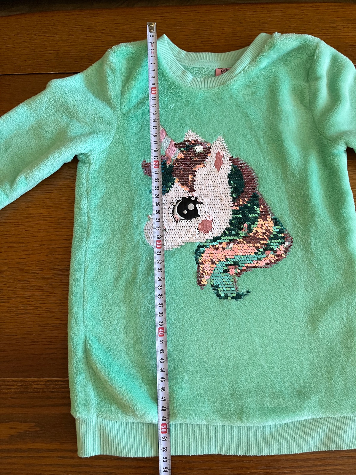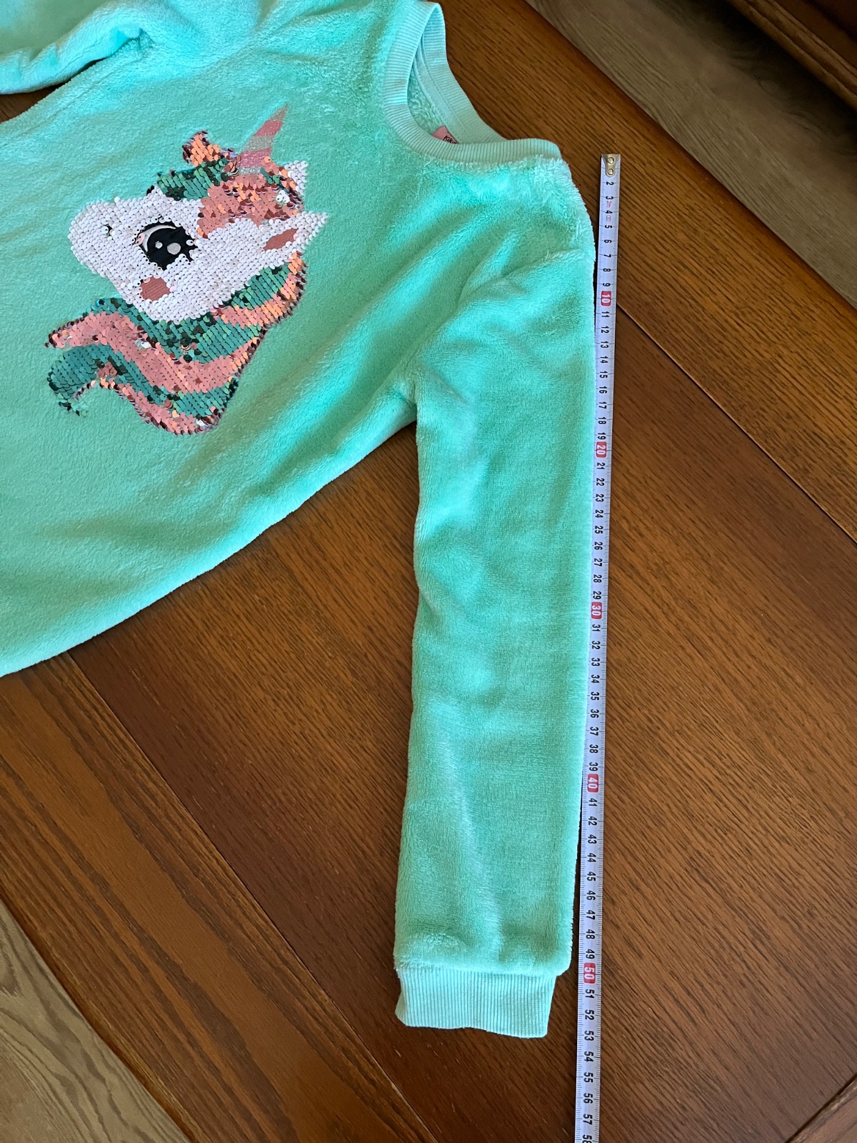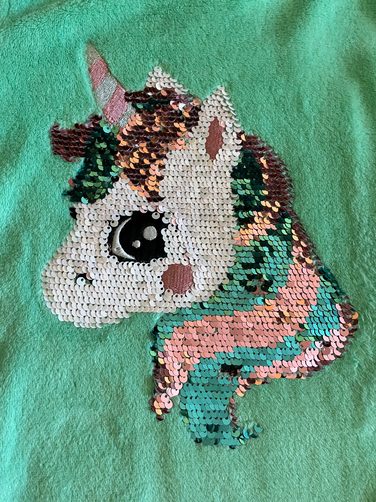 Super stav, párkrat oblečená. Teplučká chlpatka s veľkým interaktívnym premieňacím vzorom jednorožca na celom prednom dieli. Flitrový jednorožec môže mať dva rôzne odtiene farieb.