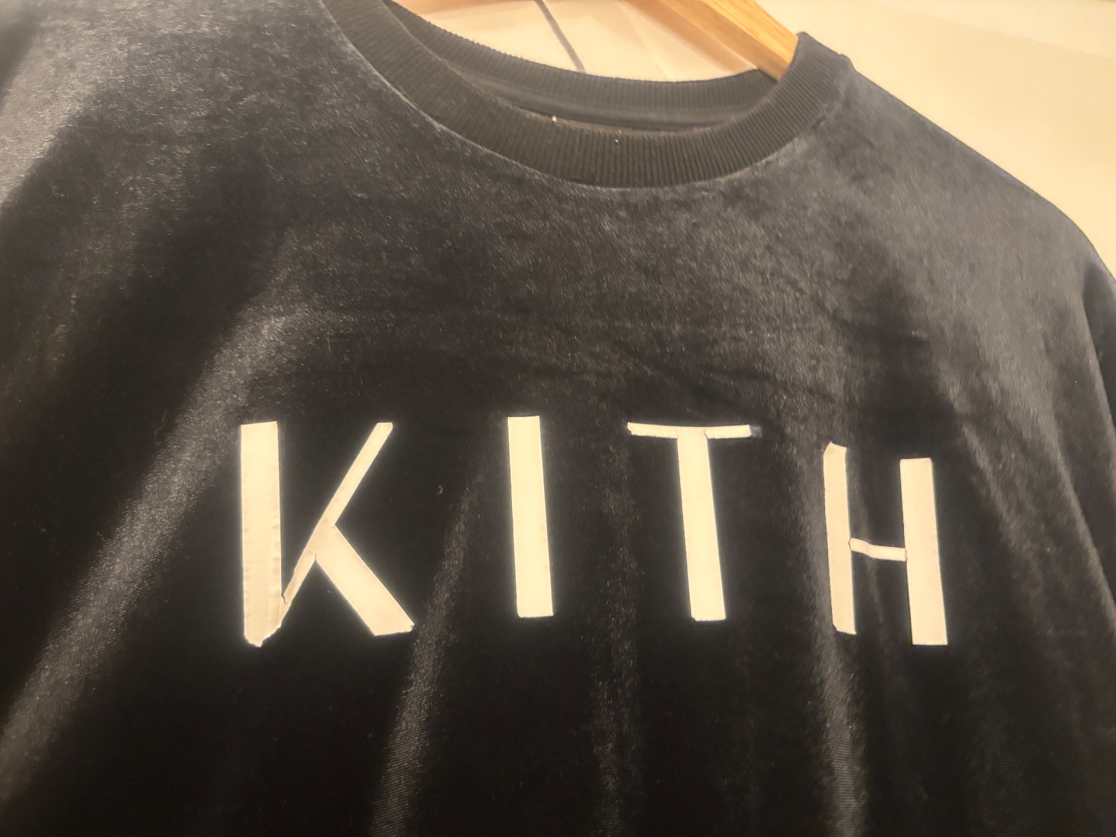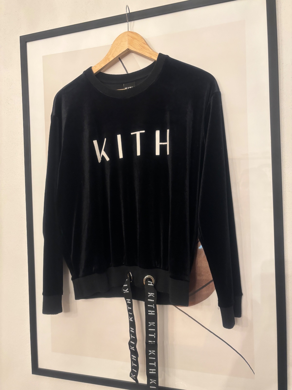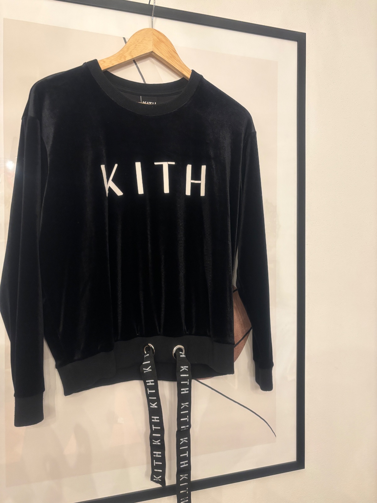 #damska_mikina KITH #velkost_s_m V super stave, s nápisom, v spodnom patente je ozdobná stuha