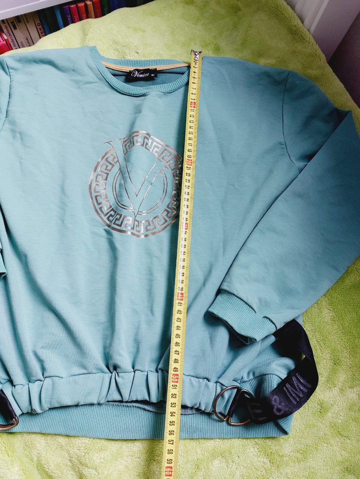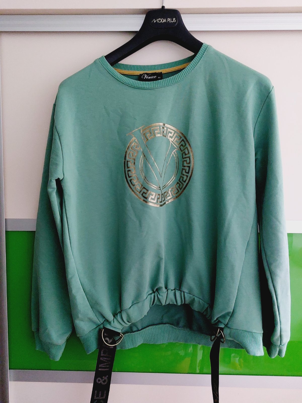 Mikina je minimálne oblečená. Farba je zvláštne zelená, ako na prvej foto. Akonáhle som to položila, tak mi ju foťák skreslil.