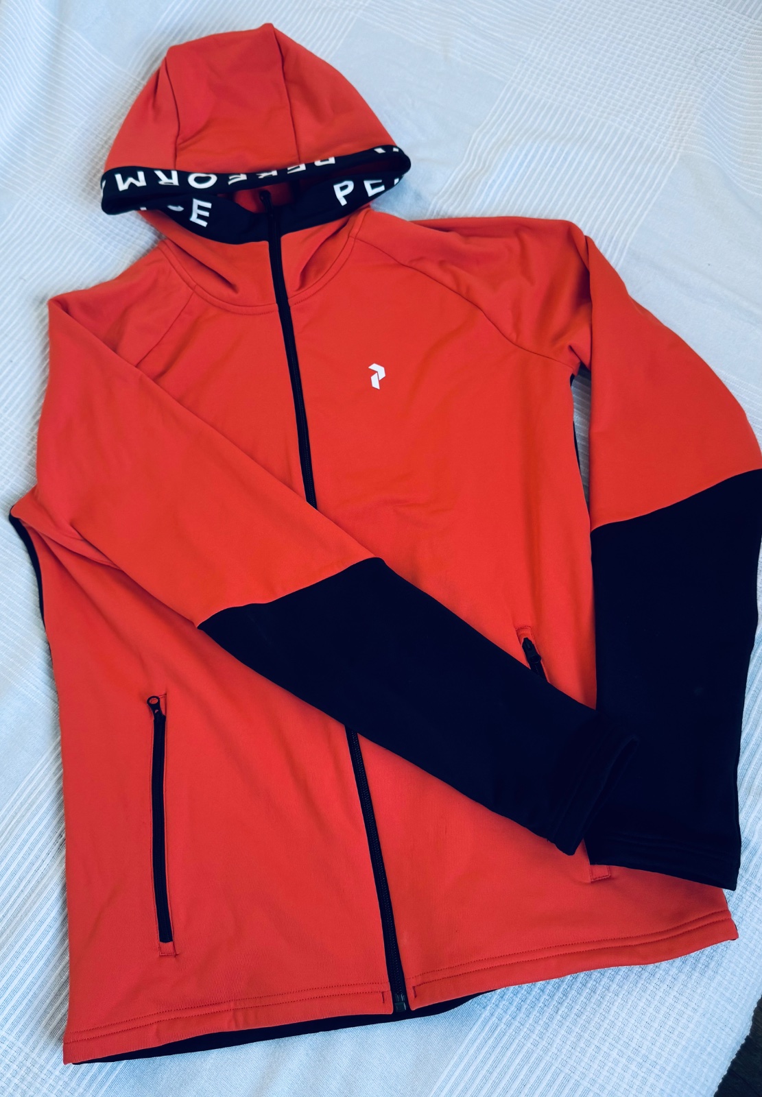 mikina peak performance - takmer úplne nenosená pánska mikina s kapucňou rovného strihu. Rukávy sú raglánové, centrálny dvojitý zips s YKK a ľahkú kapucňu s výraznou brand potlačou značky Peak Performance na okraji kapucne dopĺňa logo P na hrudi a bočné vrecká na zips. Mikina je z elastického materiálu, ktorý sa dokonale prispôsobí telu. Materiálové zloženie z ľahkého, rýchloschnúceho a pružného materiálu, ktorý výborne odvádza vlhkosť a celkové spracovanie zaručuje dokonalý komfort pri nosení a skvelé funkčné vlastnosti. Veľmi praktický a nápaditý kúsok pre akýkoľvek outdoorový zážitok.