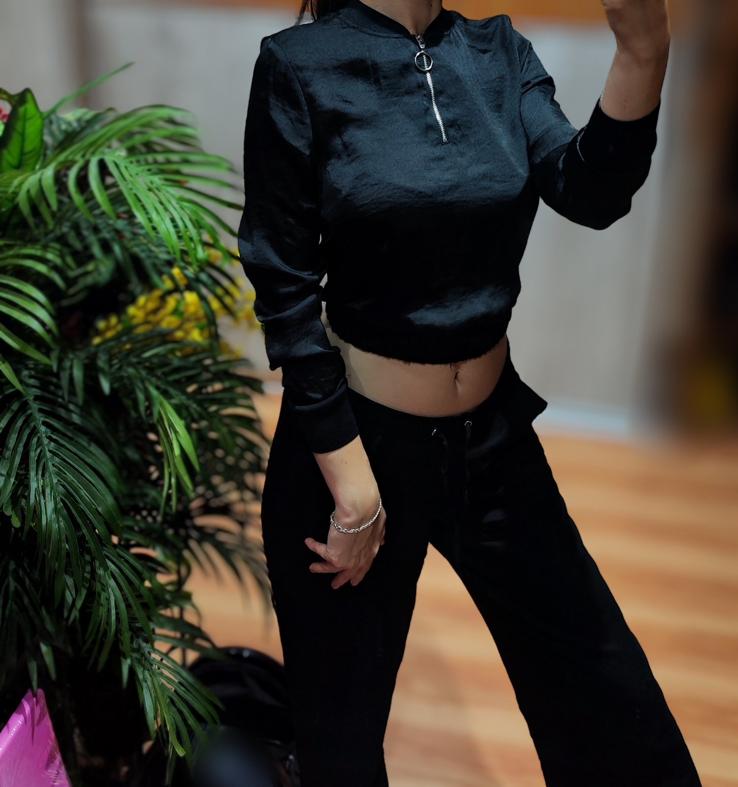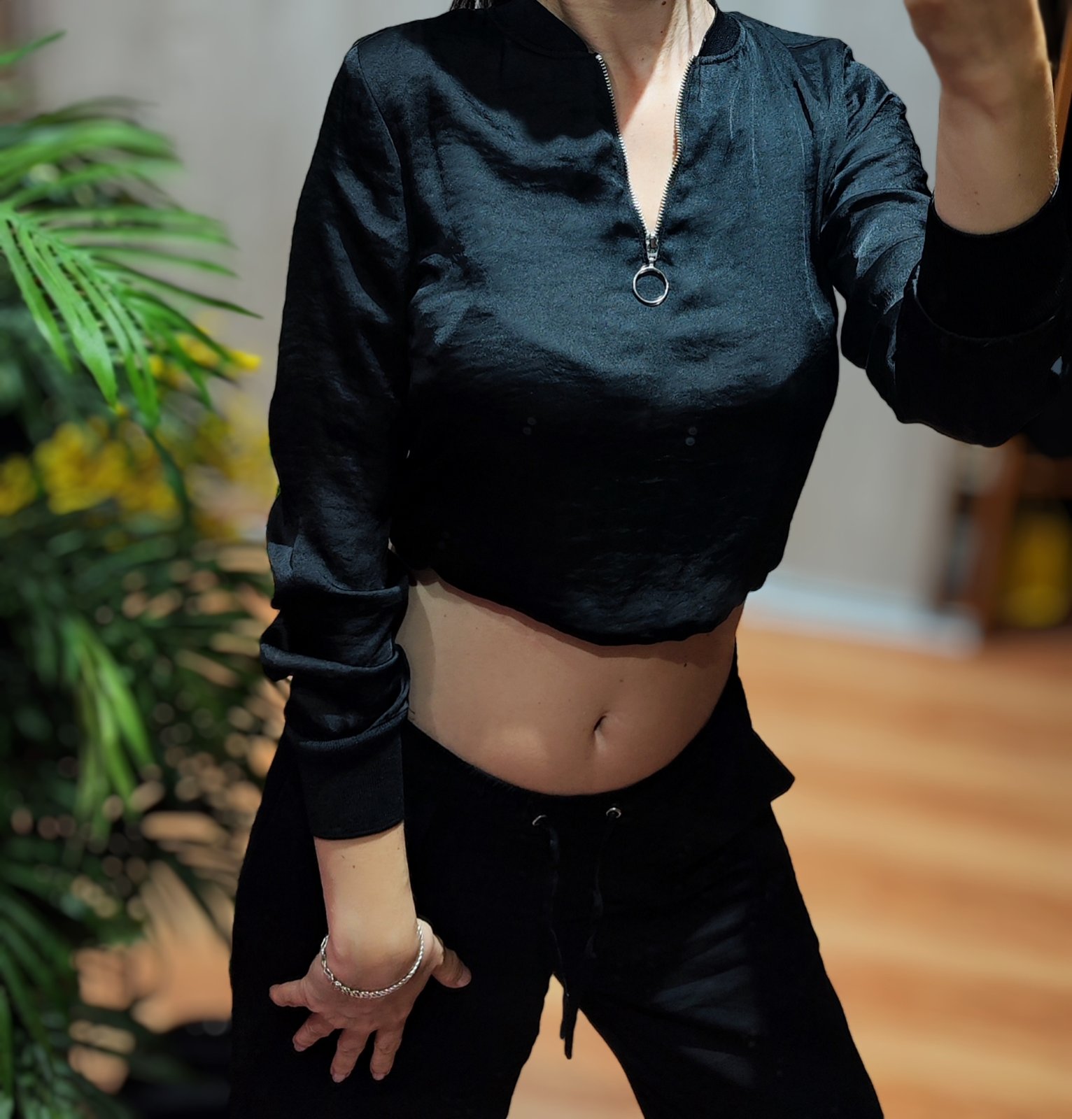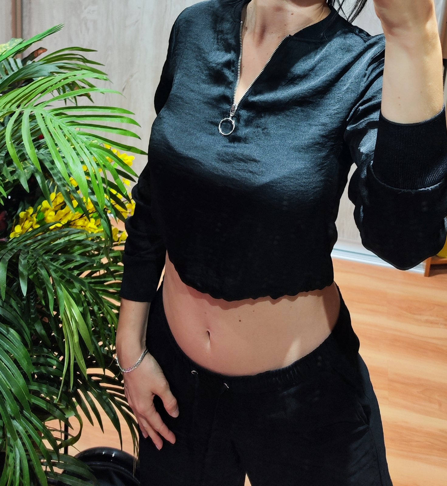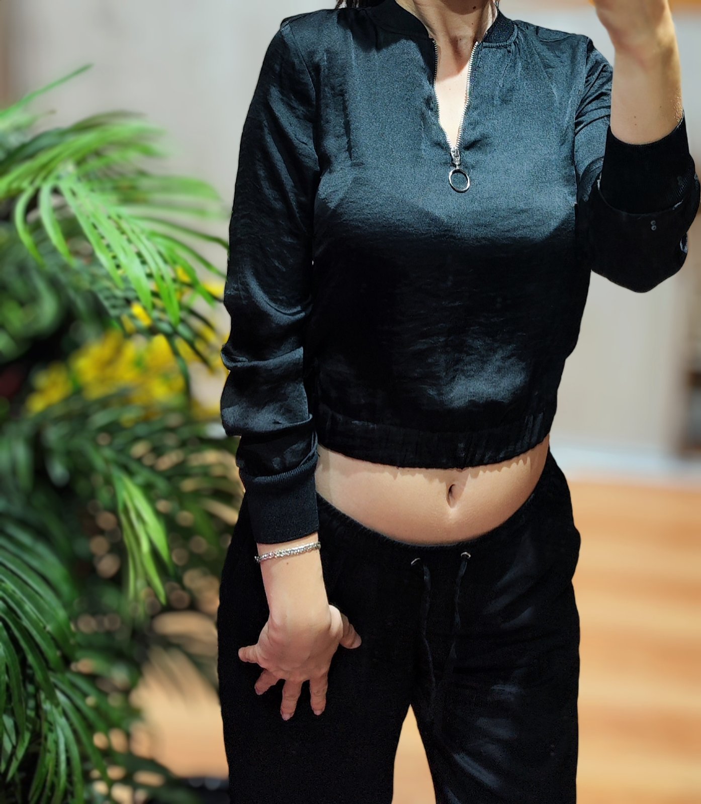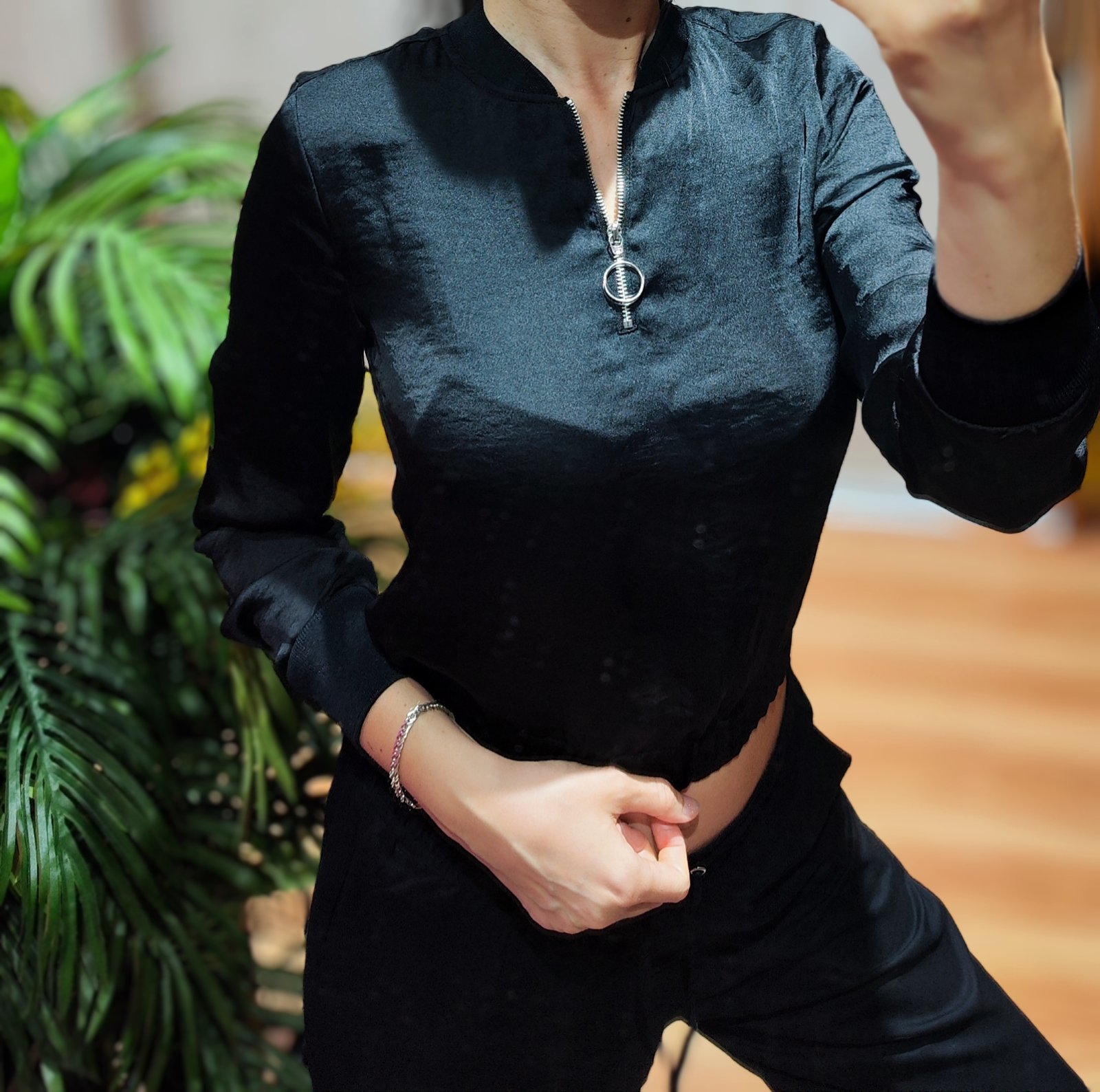 Saténová čierna mikina