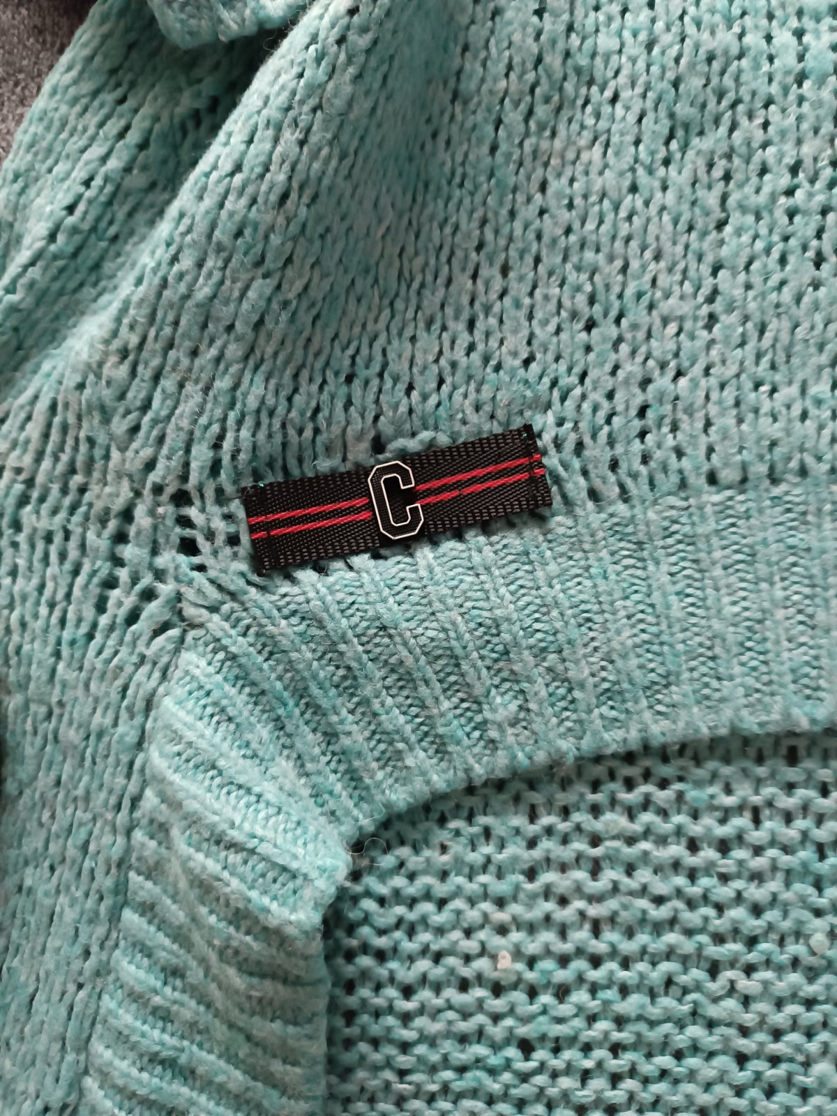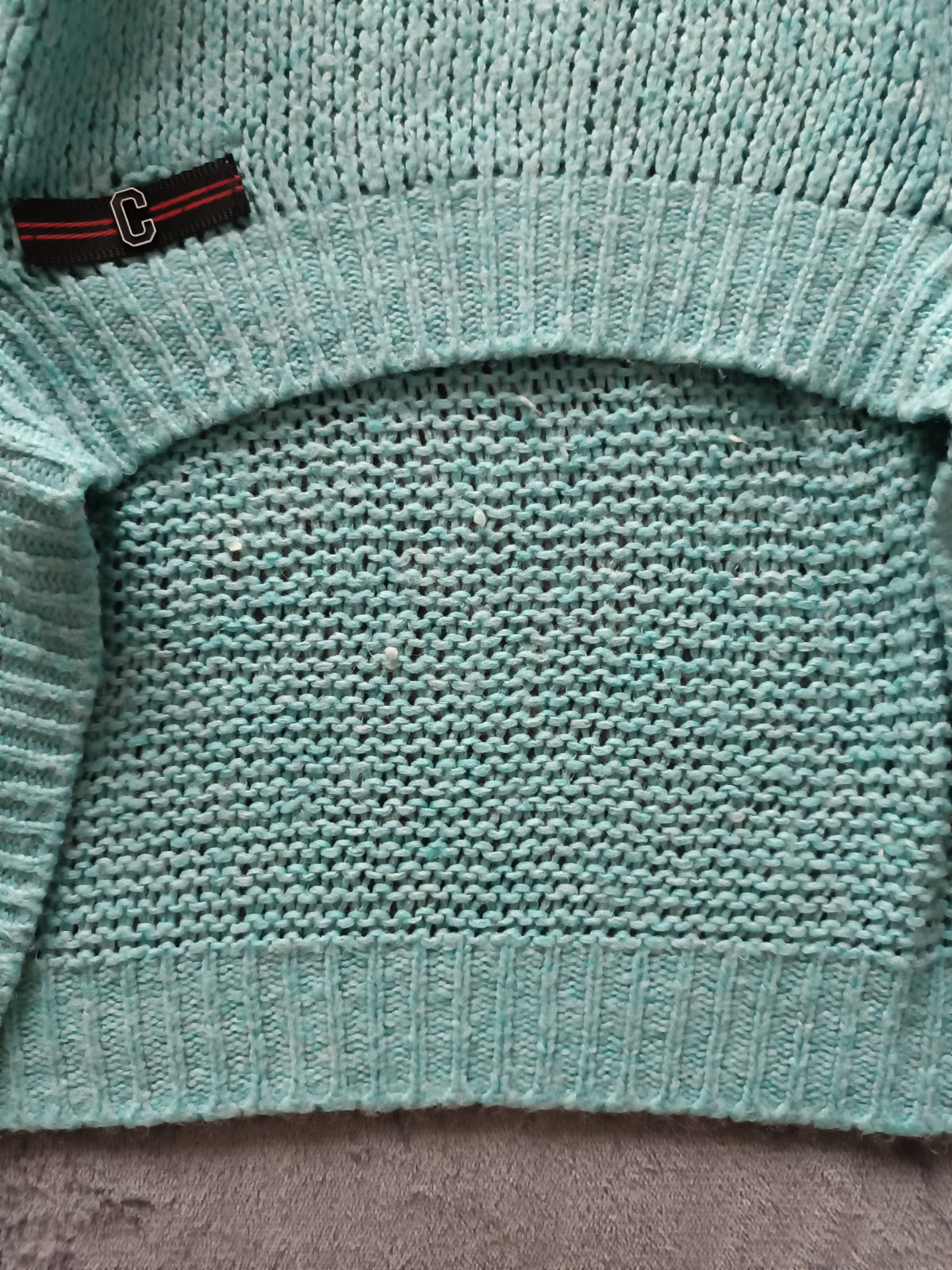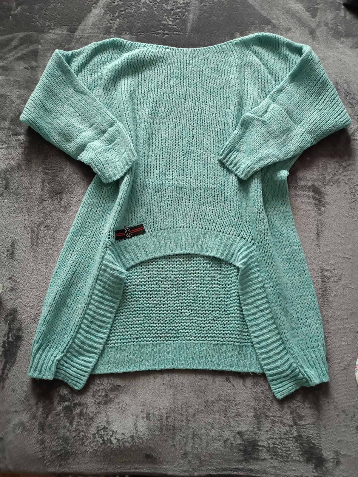 Predám mentolový svetrík predĺžený, vpredu vykrojený, lodičkový výstrih. V. Uni, cez prsia 60x2cm.