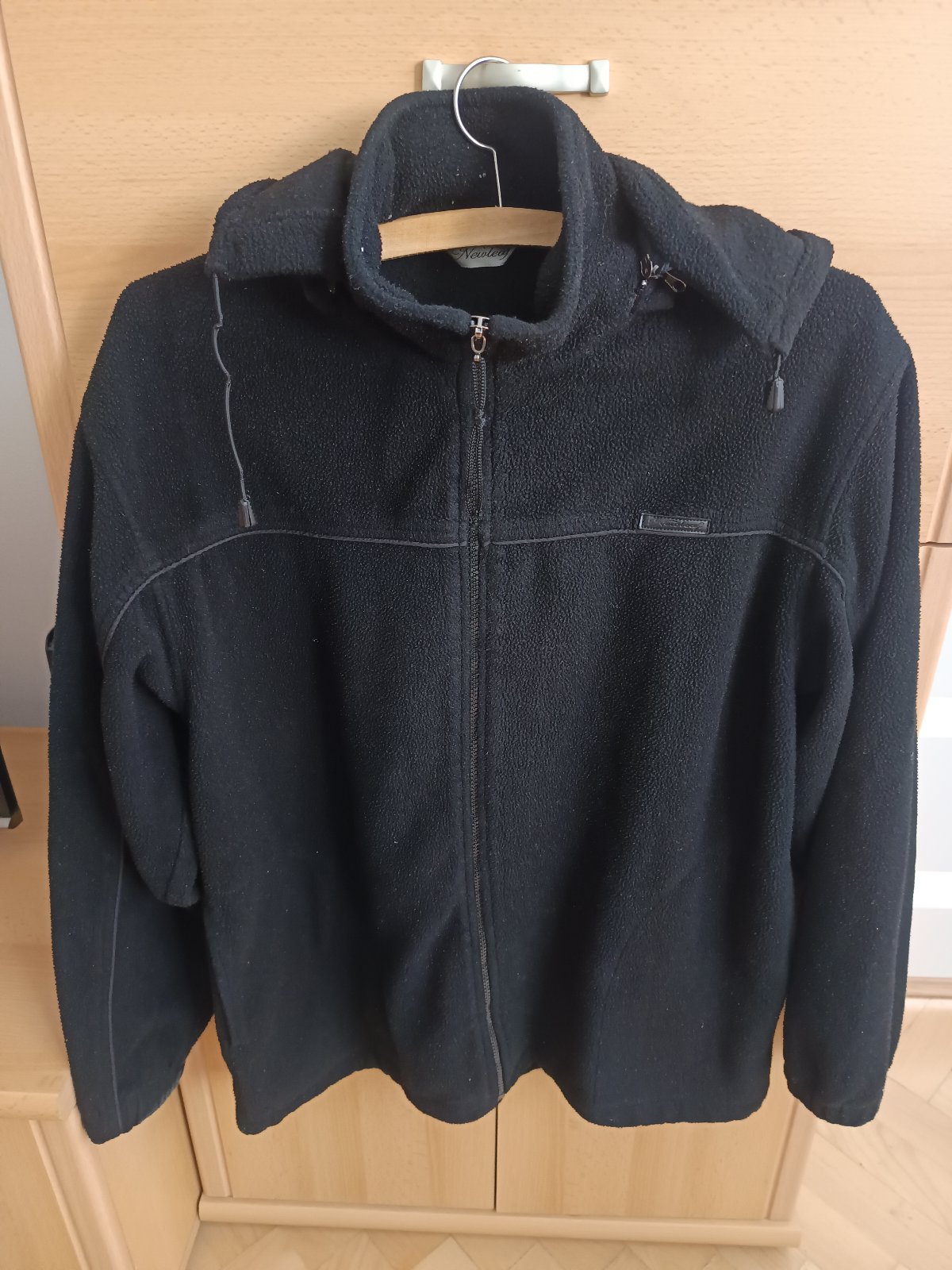 čierna mikina s kapucňou na zips. obvod cez prsia 120cm dĺžka 74cm, dĺžka rukáva od krku je 83cm. Kapucňa sa dá odopnúť. materiál bavlna+polyester.