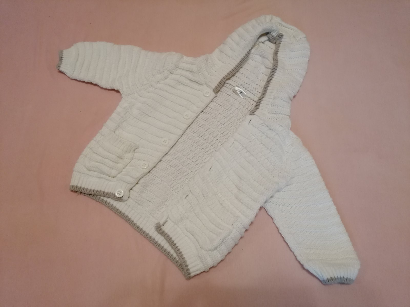 Kardigan zvláštnej farby, nedá sa presne určiť, javí sa ako hnedo- šedo -popolavá, alebo šedá do kávovej... Dl. 76 cm, dl. rukáva od krku 75 cm, šírka cez prsia 70x2 cm. Potrebné je premerať sa, ...