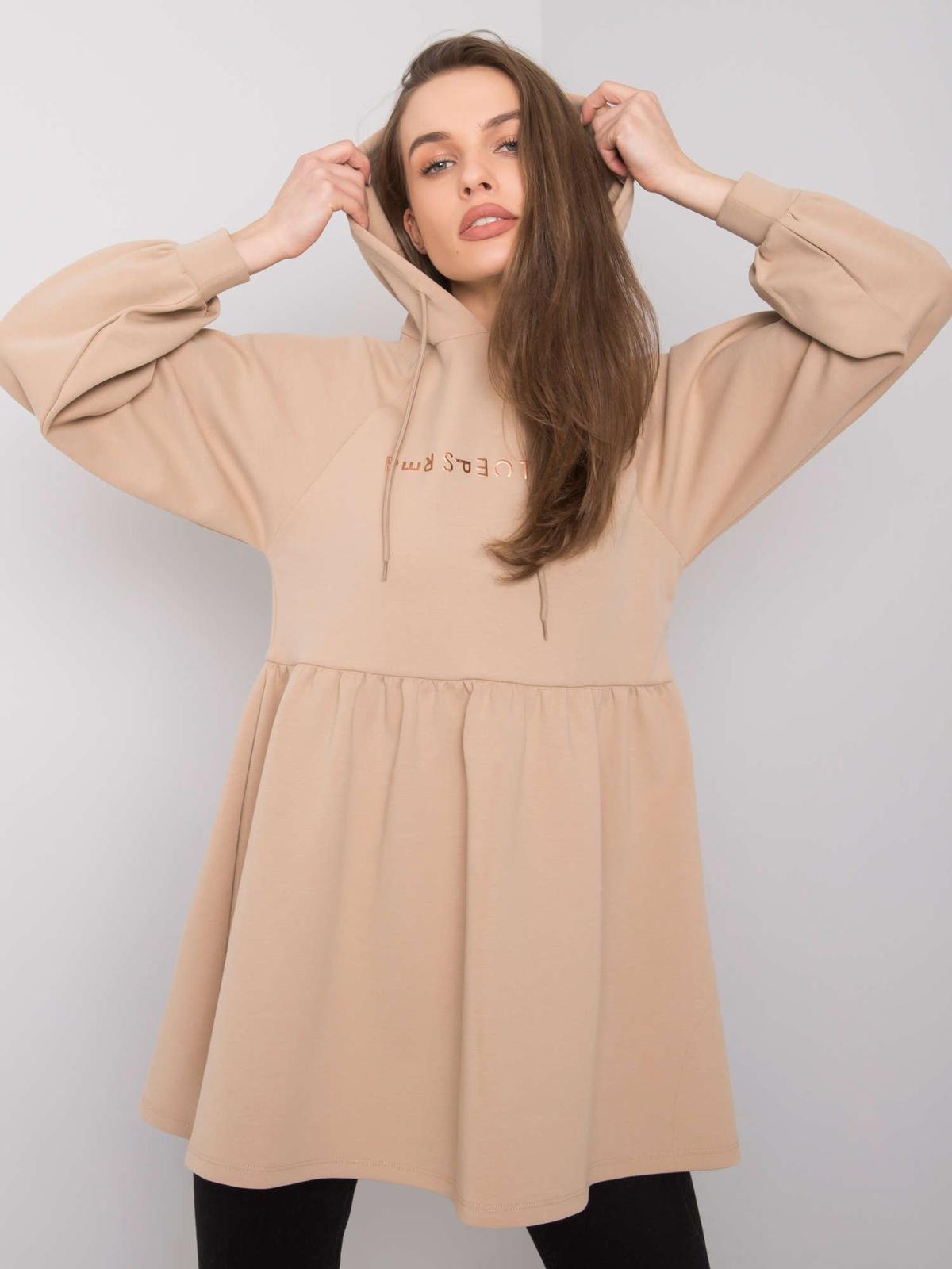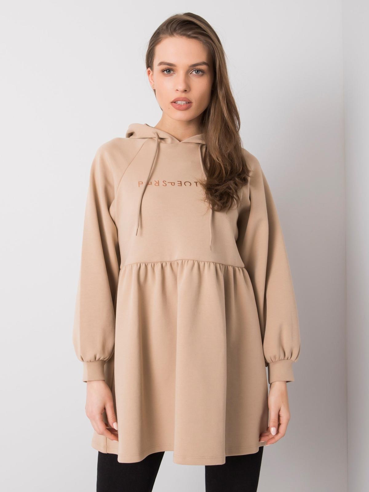 krásna veľmi kvalitná bavlnená mikina s malým zlatým nápisom . Predlžený strih s volánom