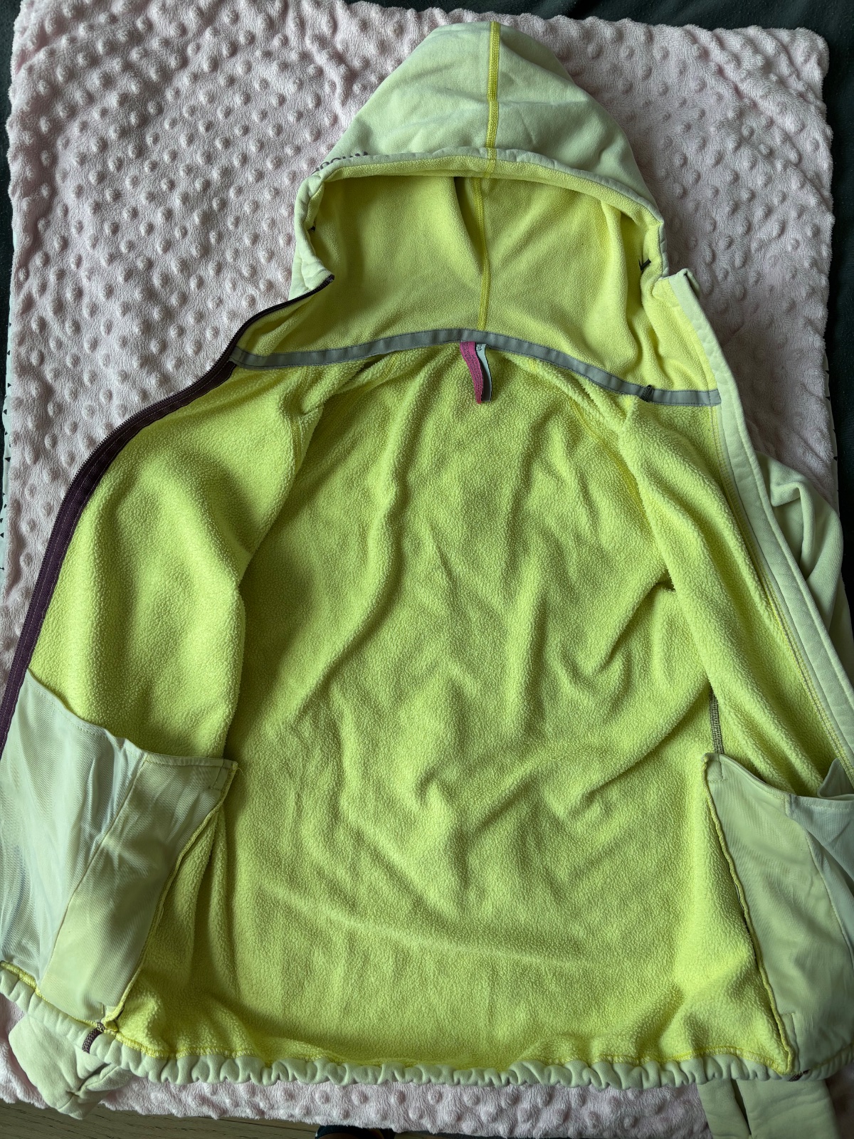 Mikina je nosena, na potlaci vidno pranie, hrubsi material, jemne predlzena, pod pazuchou zatiahnuta ale netrha sa a pri noseni nevidno(vid posledna foto)