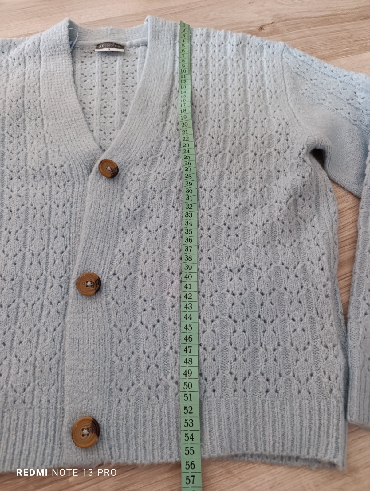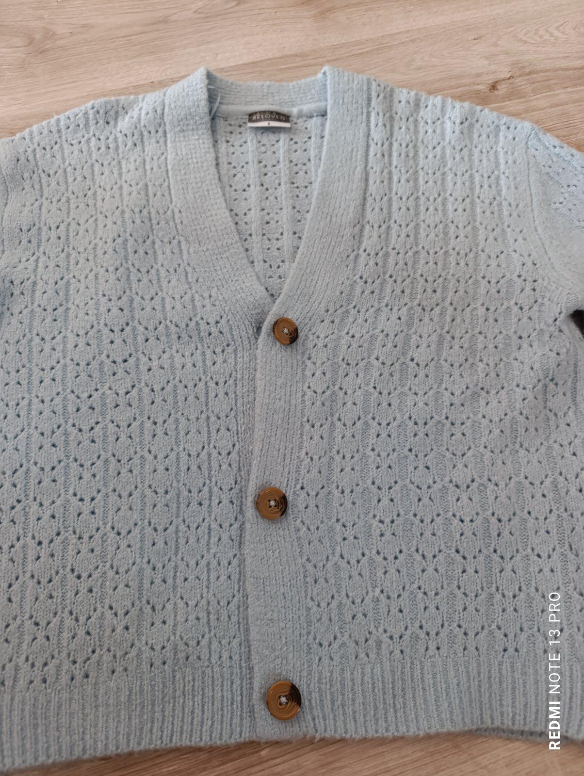 Krásny jemný sveter na gombíky, je dierkovaný, veľkosť uvedená S, ale je to mierne oversize strih tak sedí v pohode aj na M-L. Pri výmene 5€