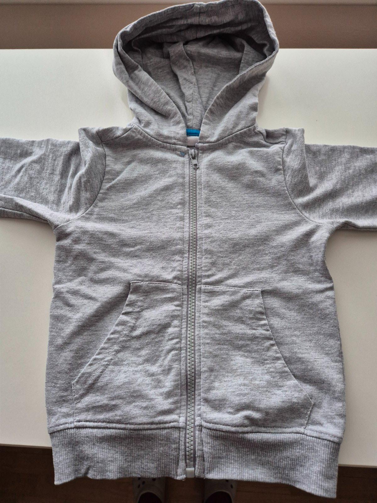 1ks mikina šedá zn. Pepco - zapínanie na zips s kapucnou - tenká vel. 98 (je mensia )