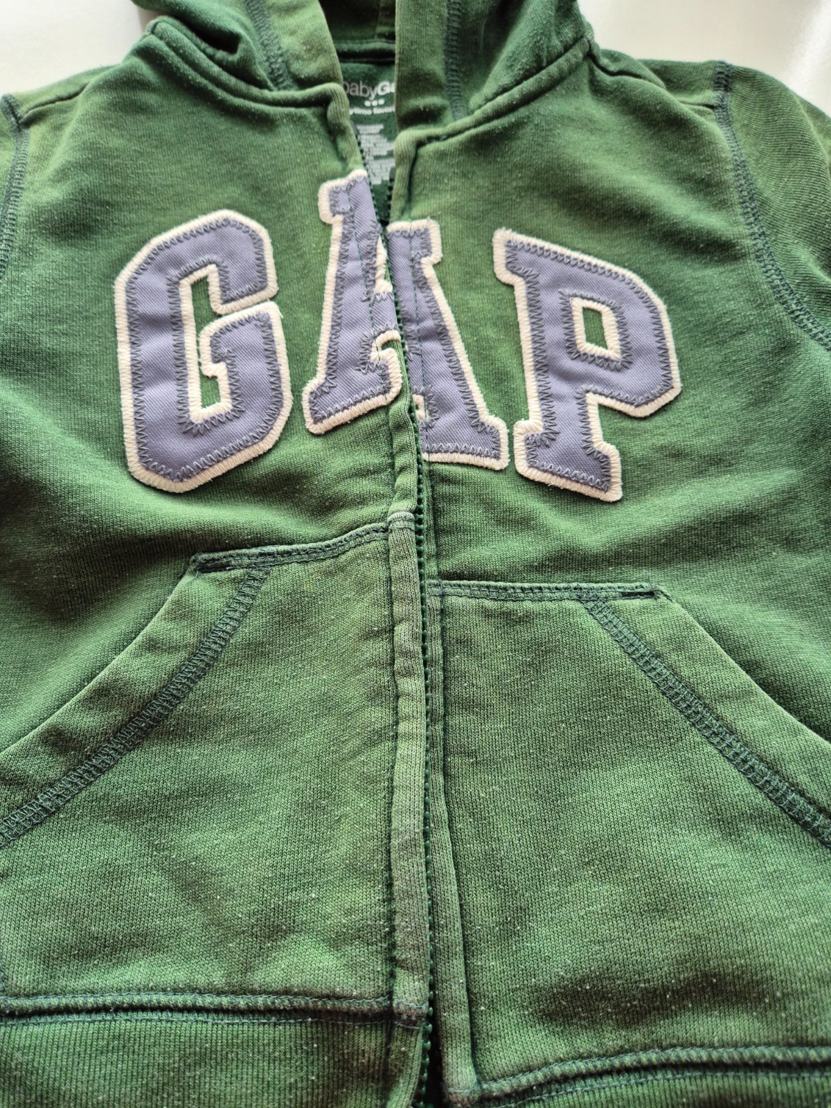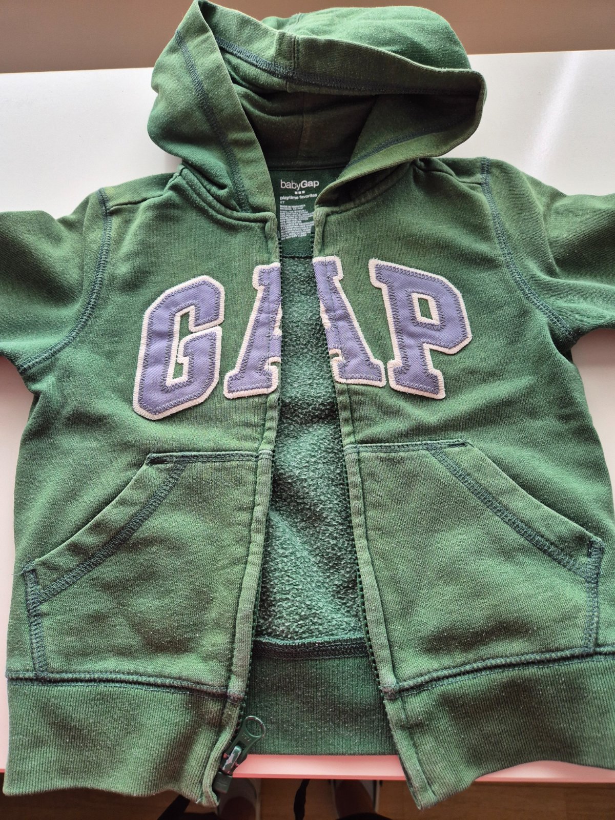 1ks mikina zelená zn. GAP - zapinanie na zips s kapucnou - vyblednutejsie farby od prania (vid detail foto)