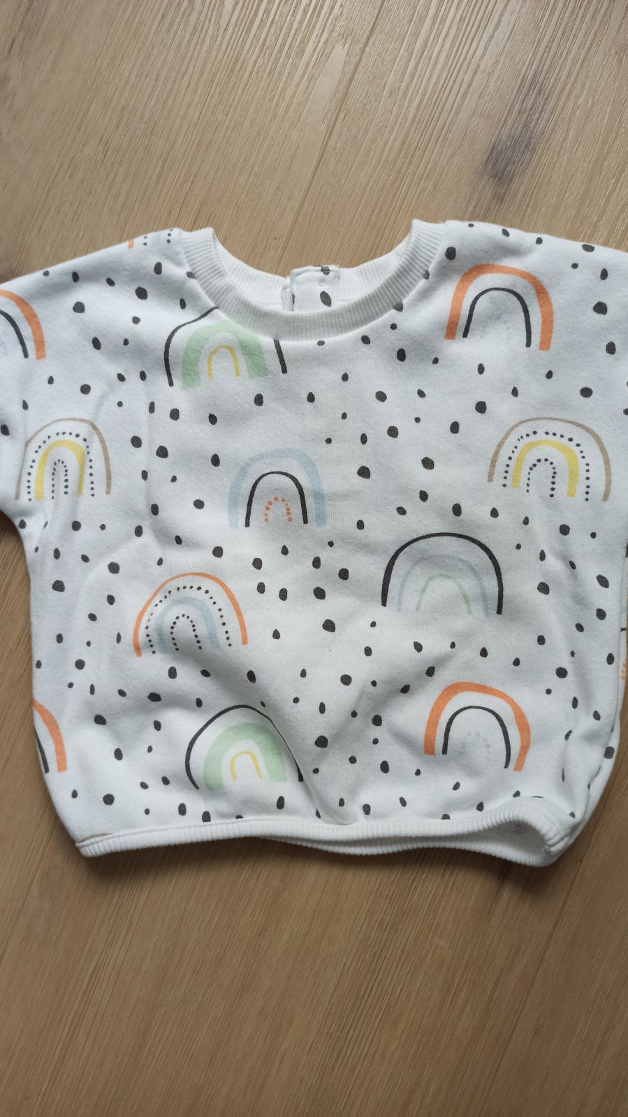 Biela mikina s dúhami, veľkosť 0-3 mesiace, v dobrom nosenom stave.
