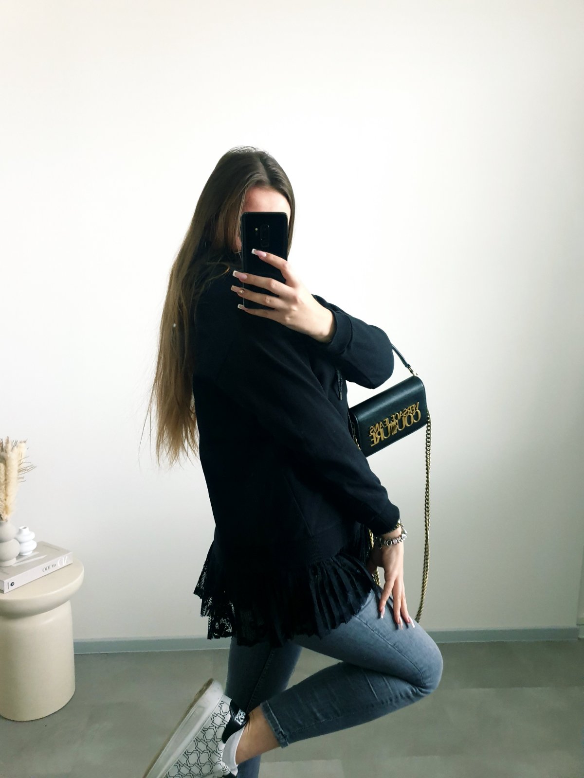 Čierna mikina s čipkou M/L