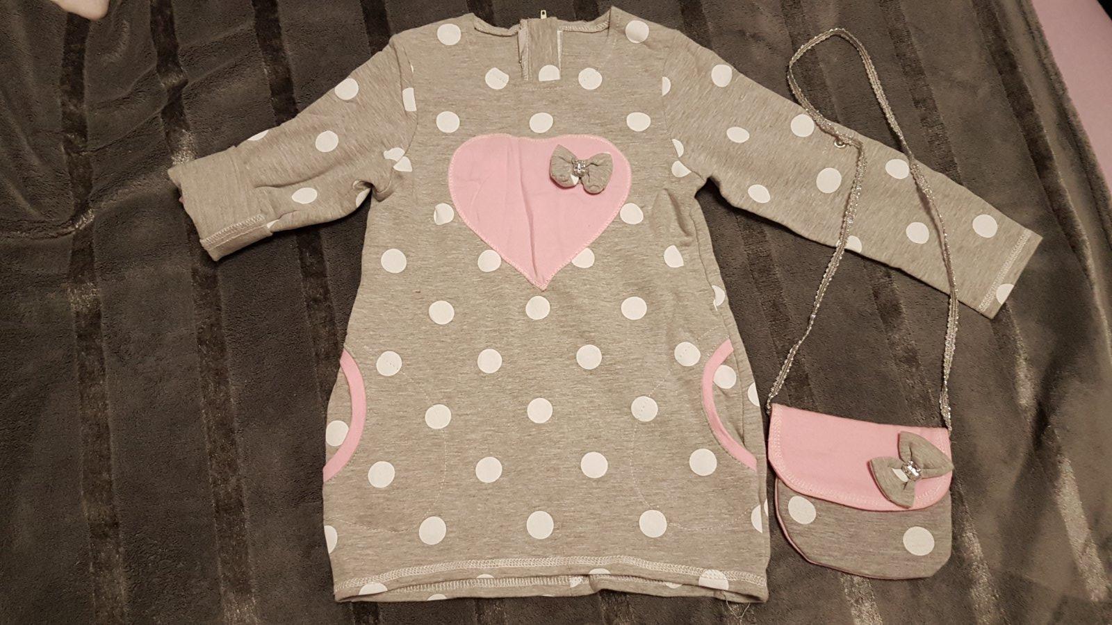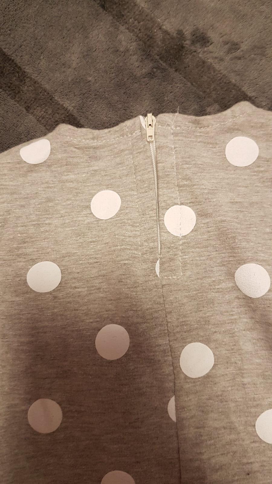 Ponúkam na predaj krásnu svetlosivú bodkovanú predĺženú mikinku v dobrom stave. Má dlhý rukáv, ktorý sa dá zohnúť, zapnúť a je z neho 3/4. Zapínanie vzadu na zips Súčasťou je aj malá kapsička, do ktorej si môže malá parádnica odložiť svoje poklady. Cena 5e plus poštovné alebo je možný osobný odber v Bratislave v Petržalke.