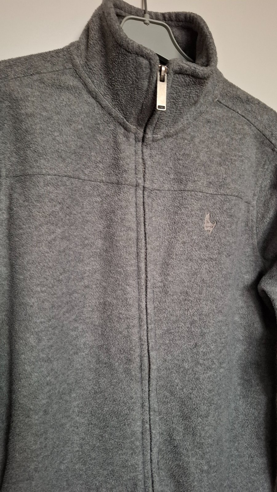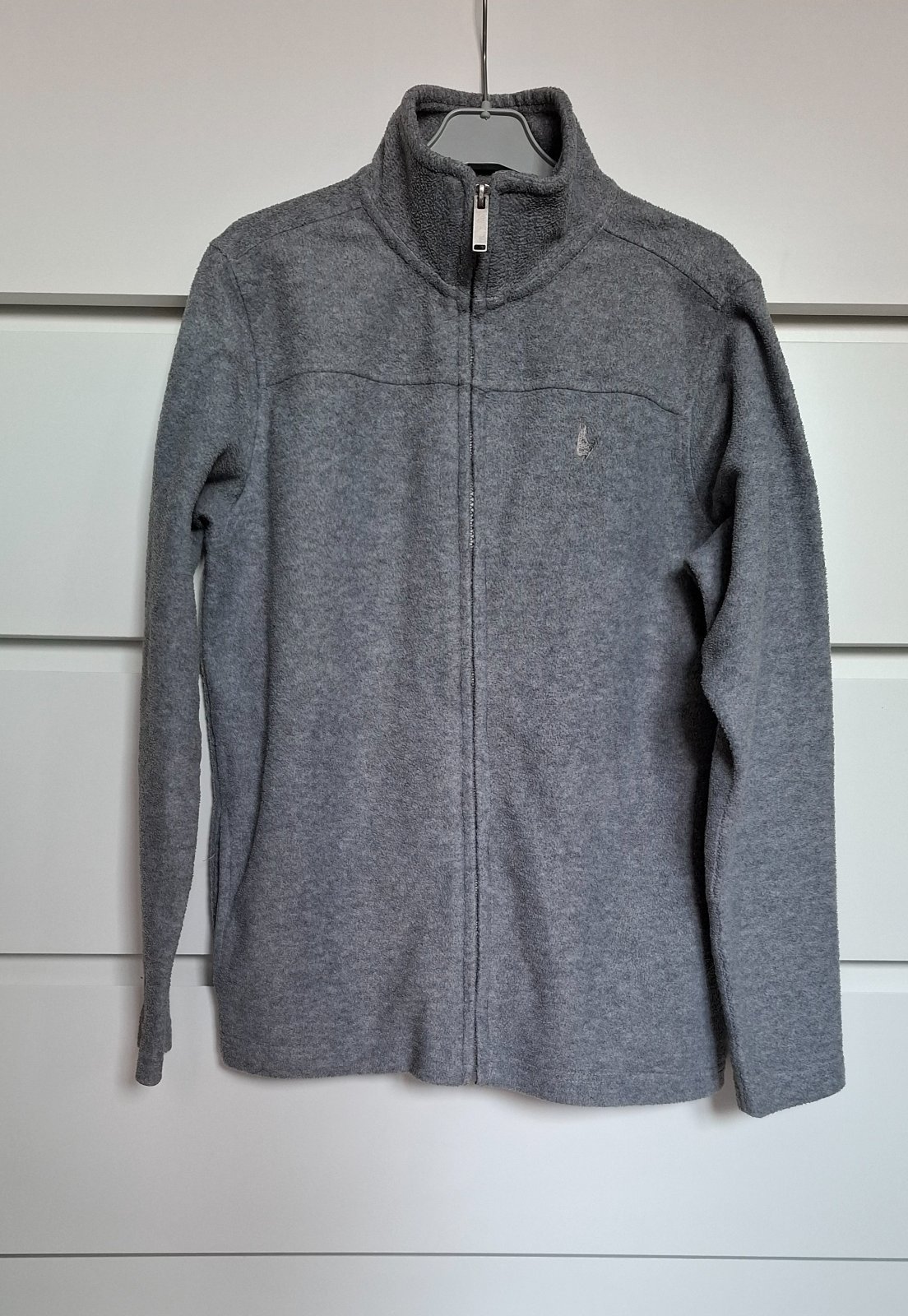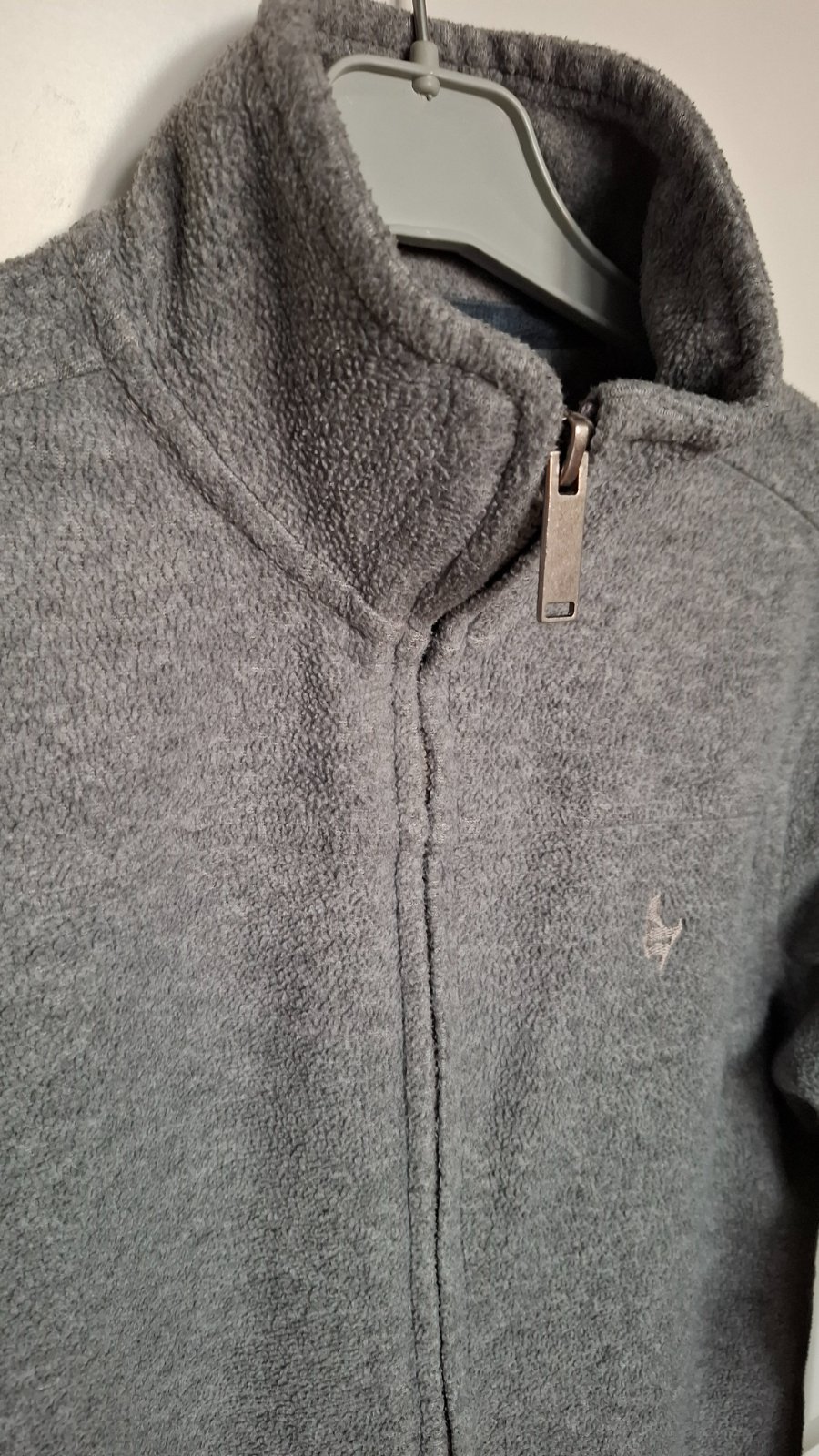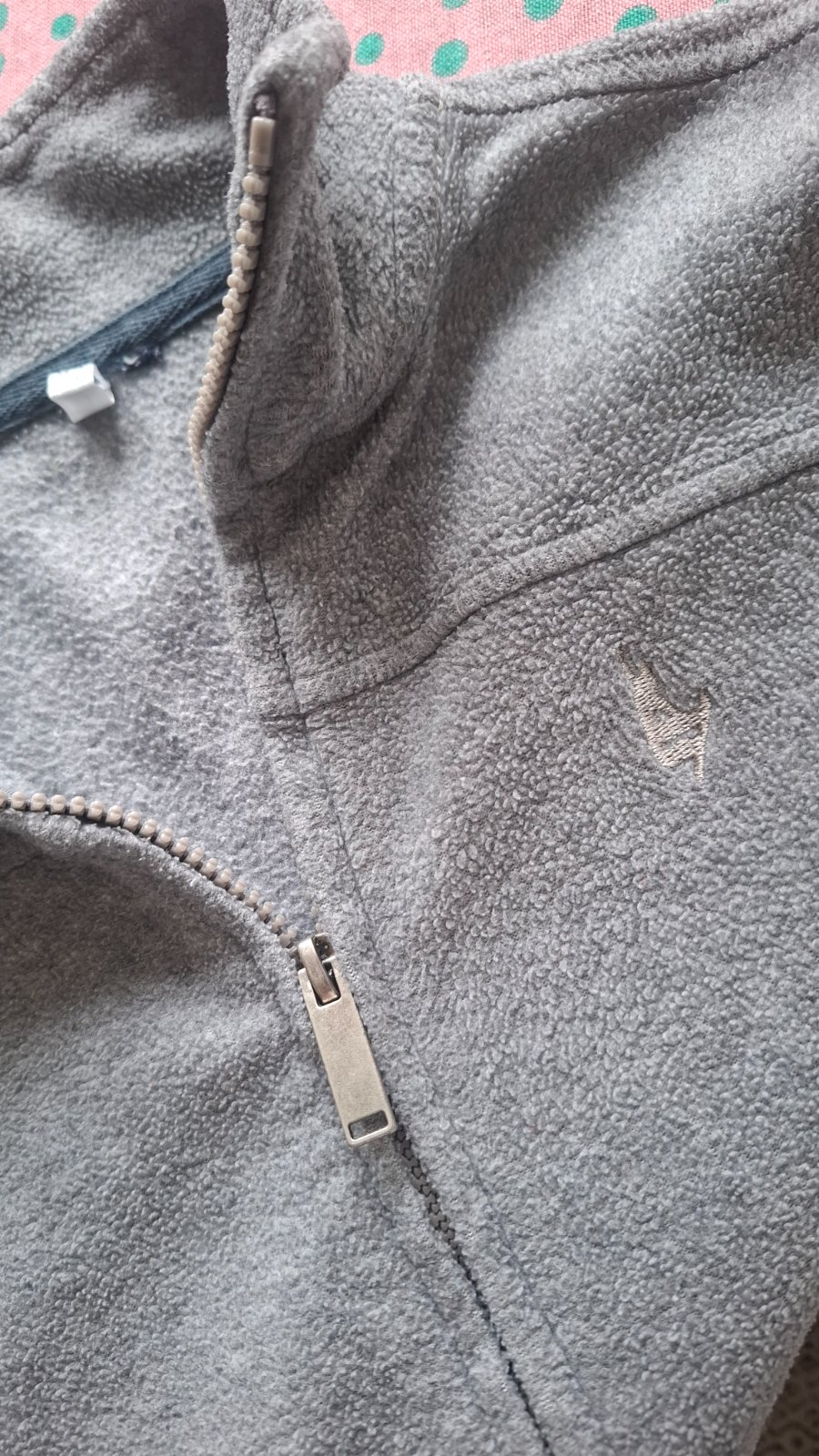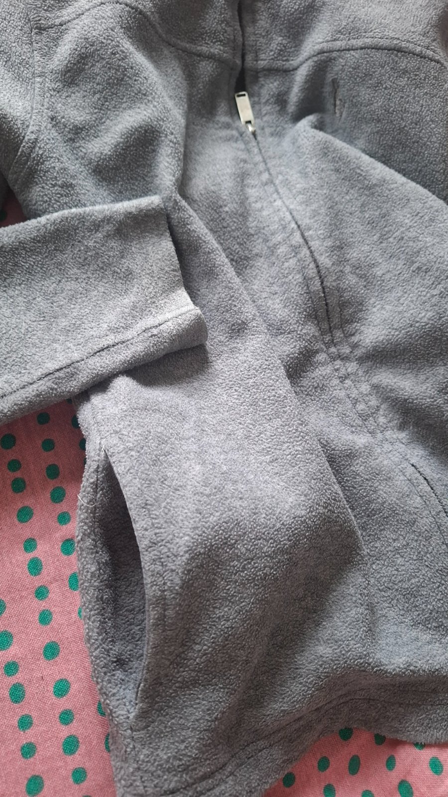 Príjemná flusová mikina, v dobrom nosenom stave, jednoduchý strih, bočné vnútorné vrecká, zapínanie na zips - až ku krku.