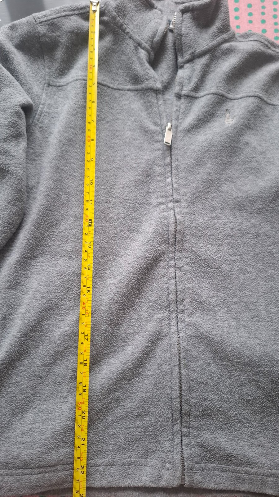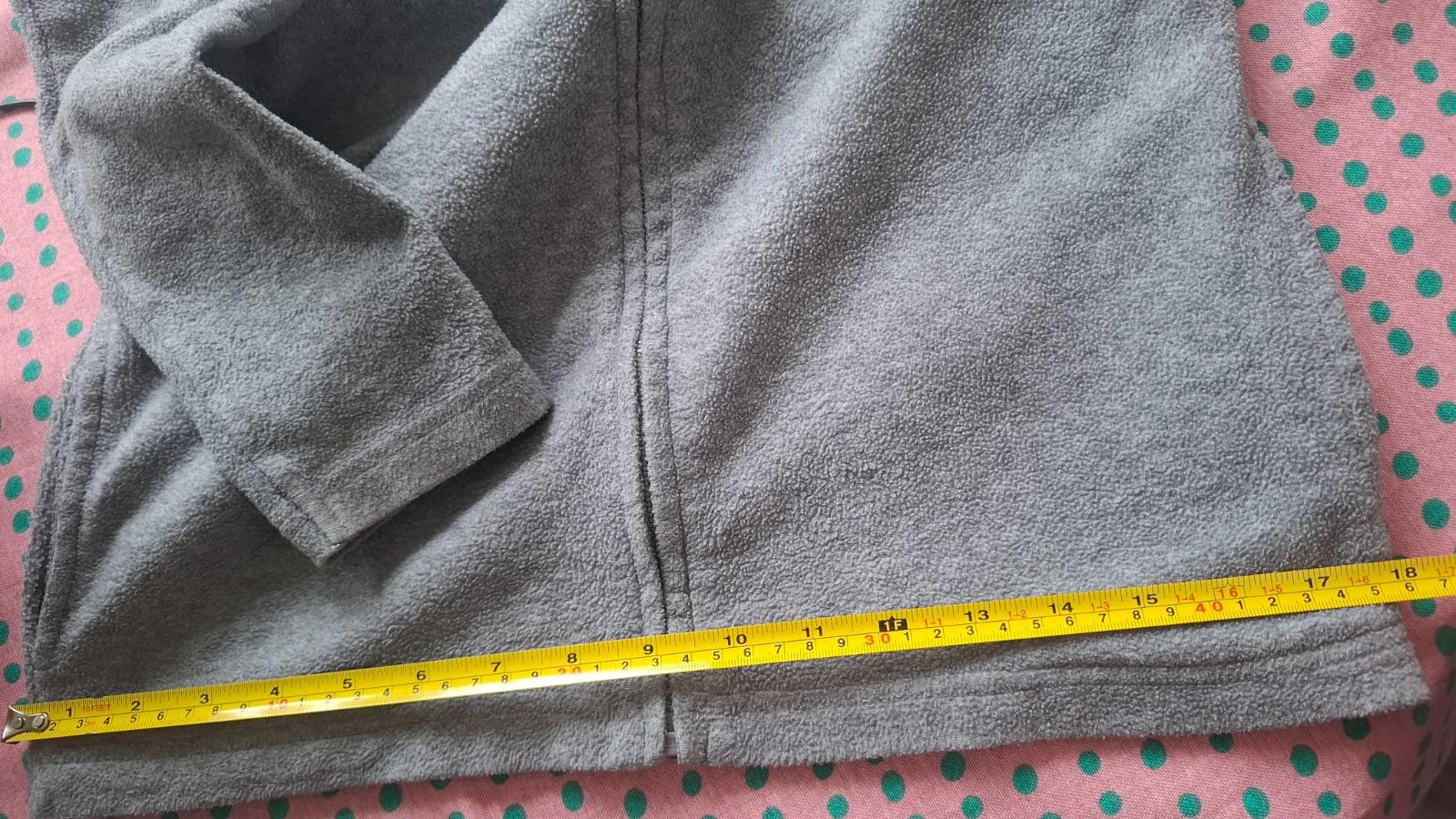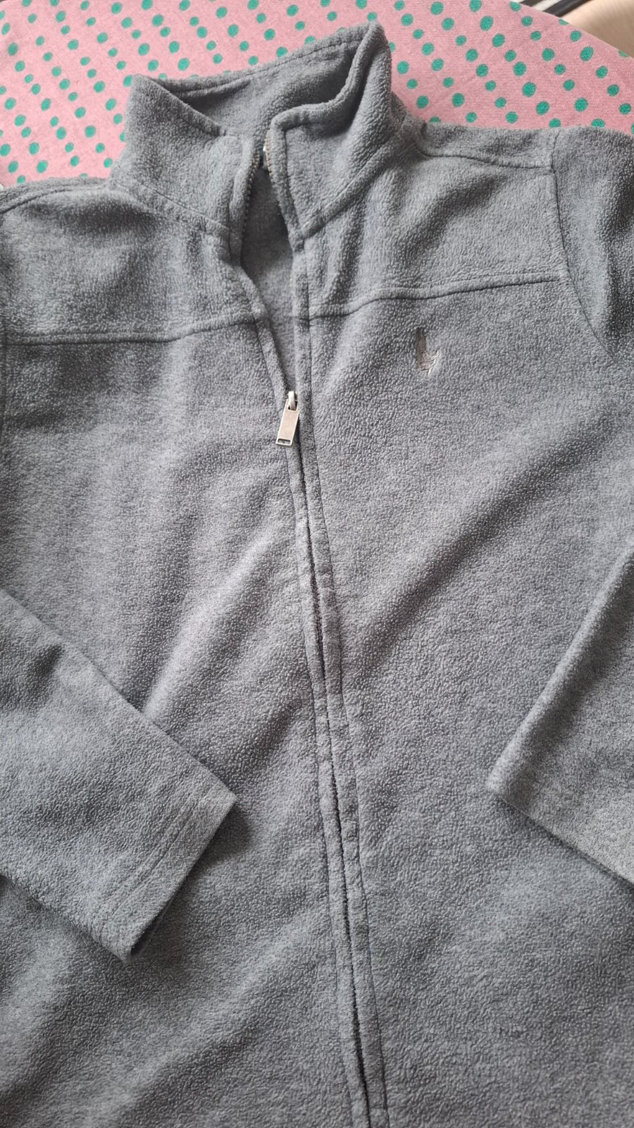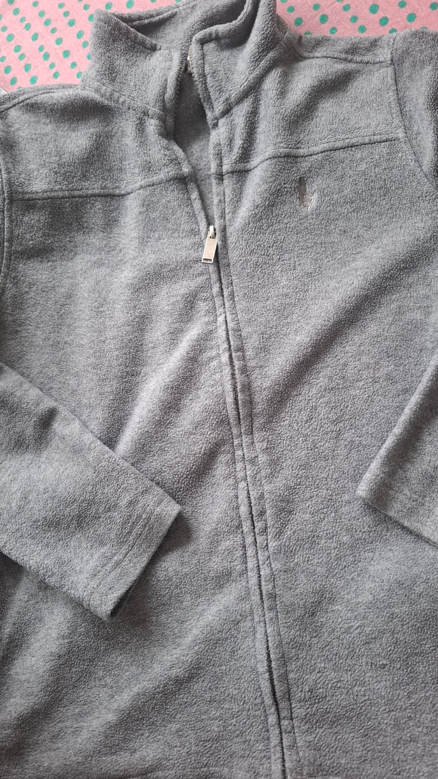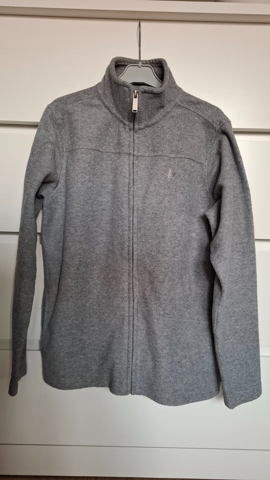 Príjemná flusová mikina, v dobrom nosenom stave, jednoduchý strih, bočné vnútorné vrecká, zapínanie na zips - až ku krku.