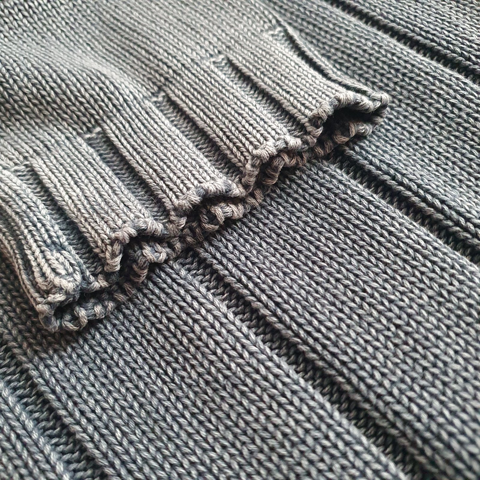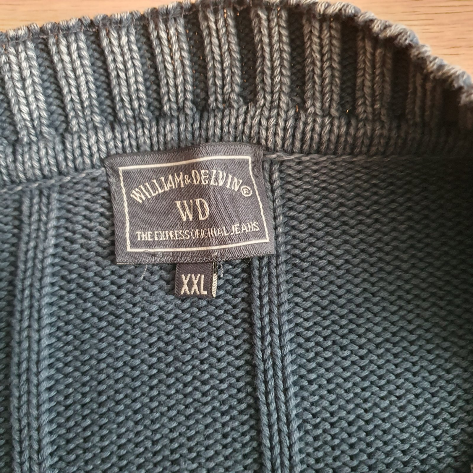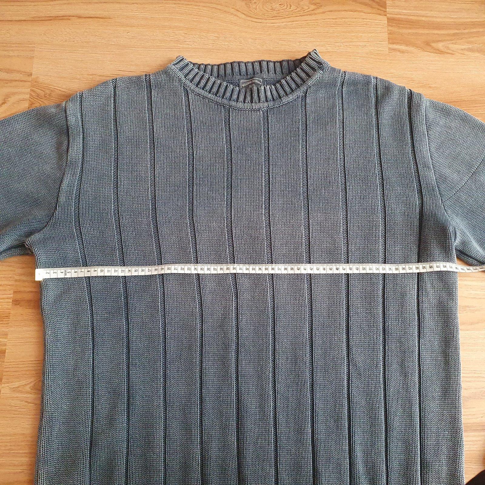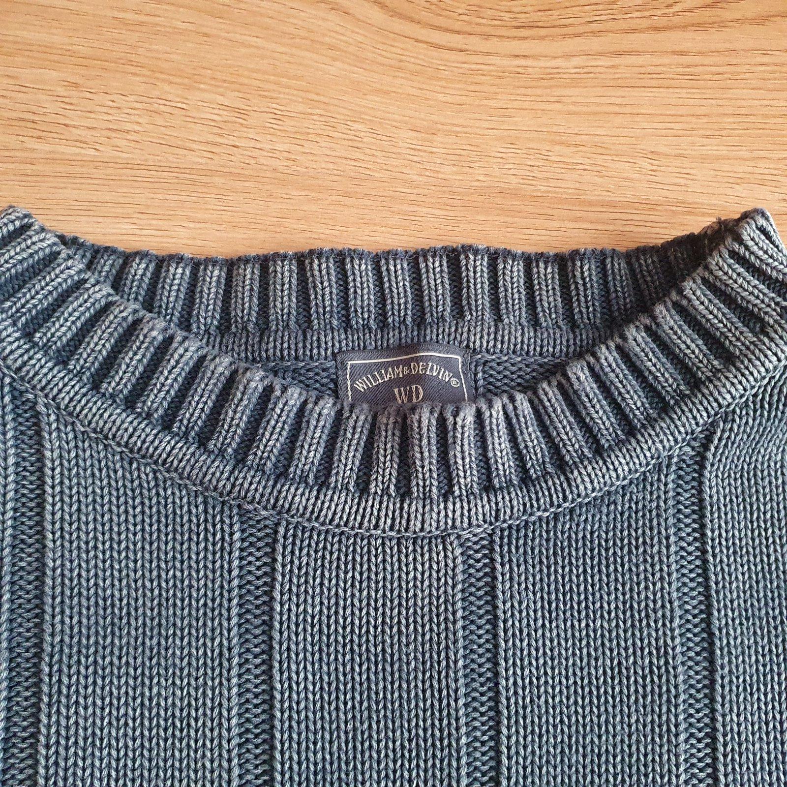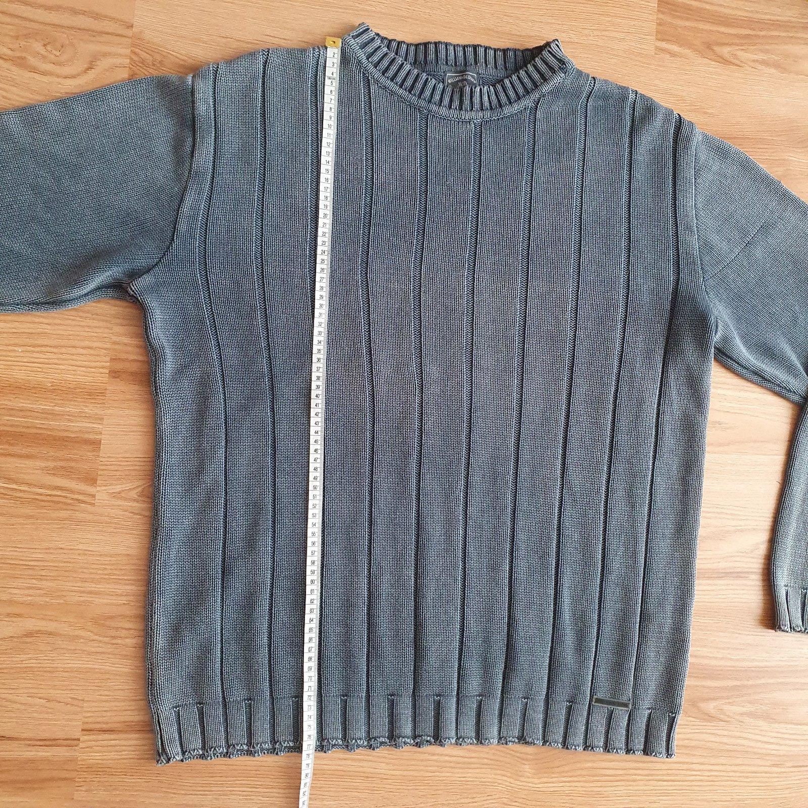 1x použité a oprané. Na ľavom ramene od výroby chyba v tkanine. Inak žiadne poškodenia. 100% bavlna, farba denim. Krásny sveter, pre nás veľký. Cena je bez pošty