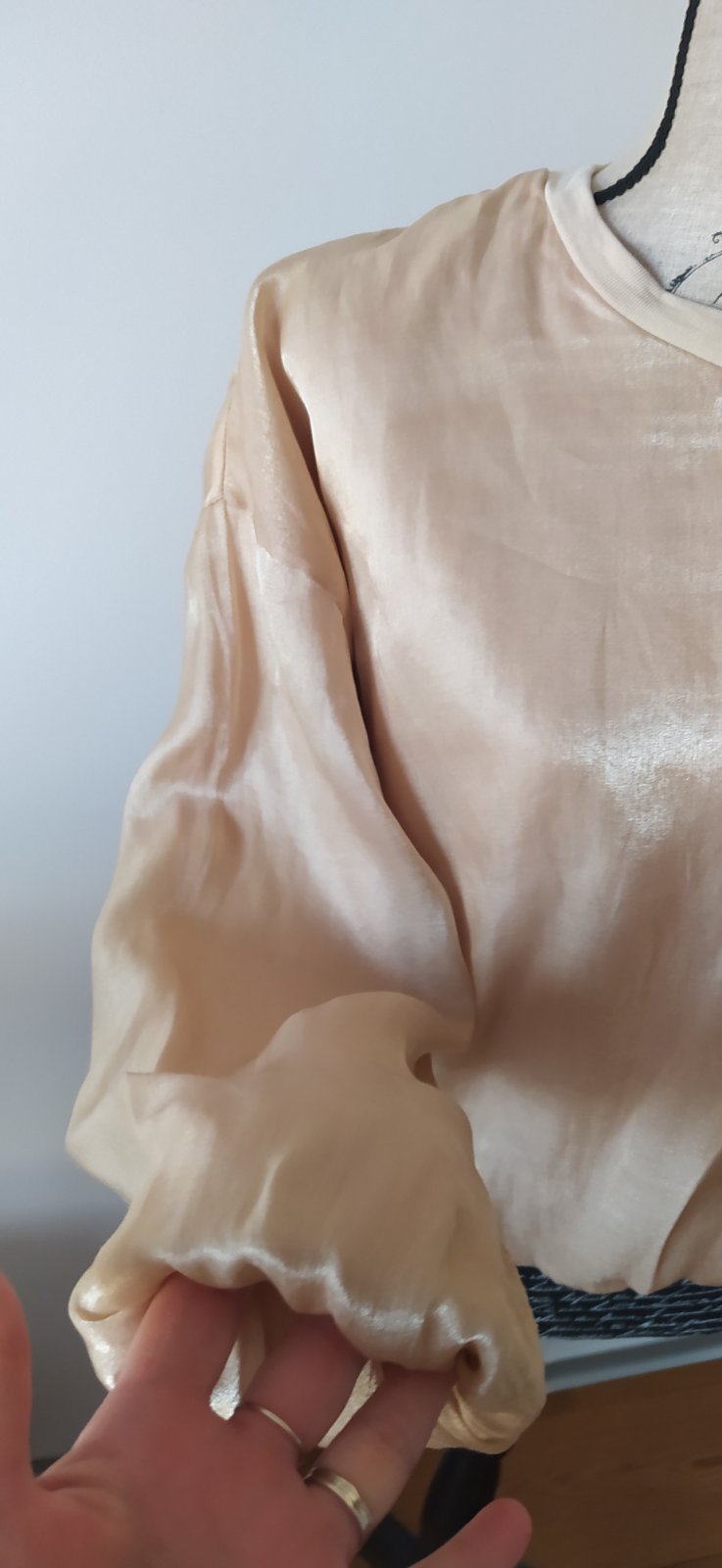 Zlata mikina krasna len mne mala. Je to m/l. Zvonka nema chybu len bezec sa zacal trochu supat a vnutri bodka neviem od coho.. pri noseni vsak nevidiet. Zohladnene v cene. Sirka prsia 49-69, pas 44...