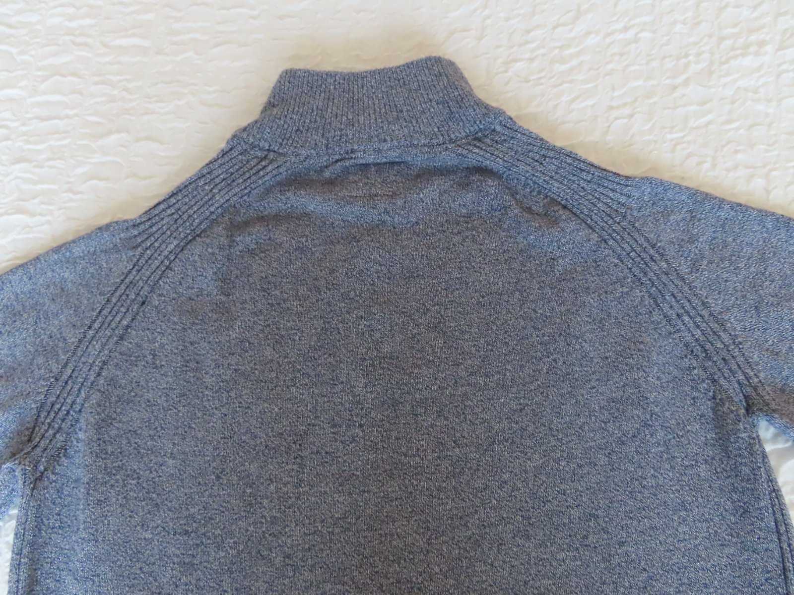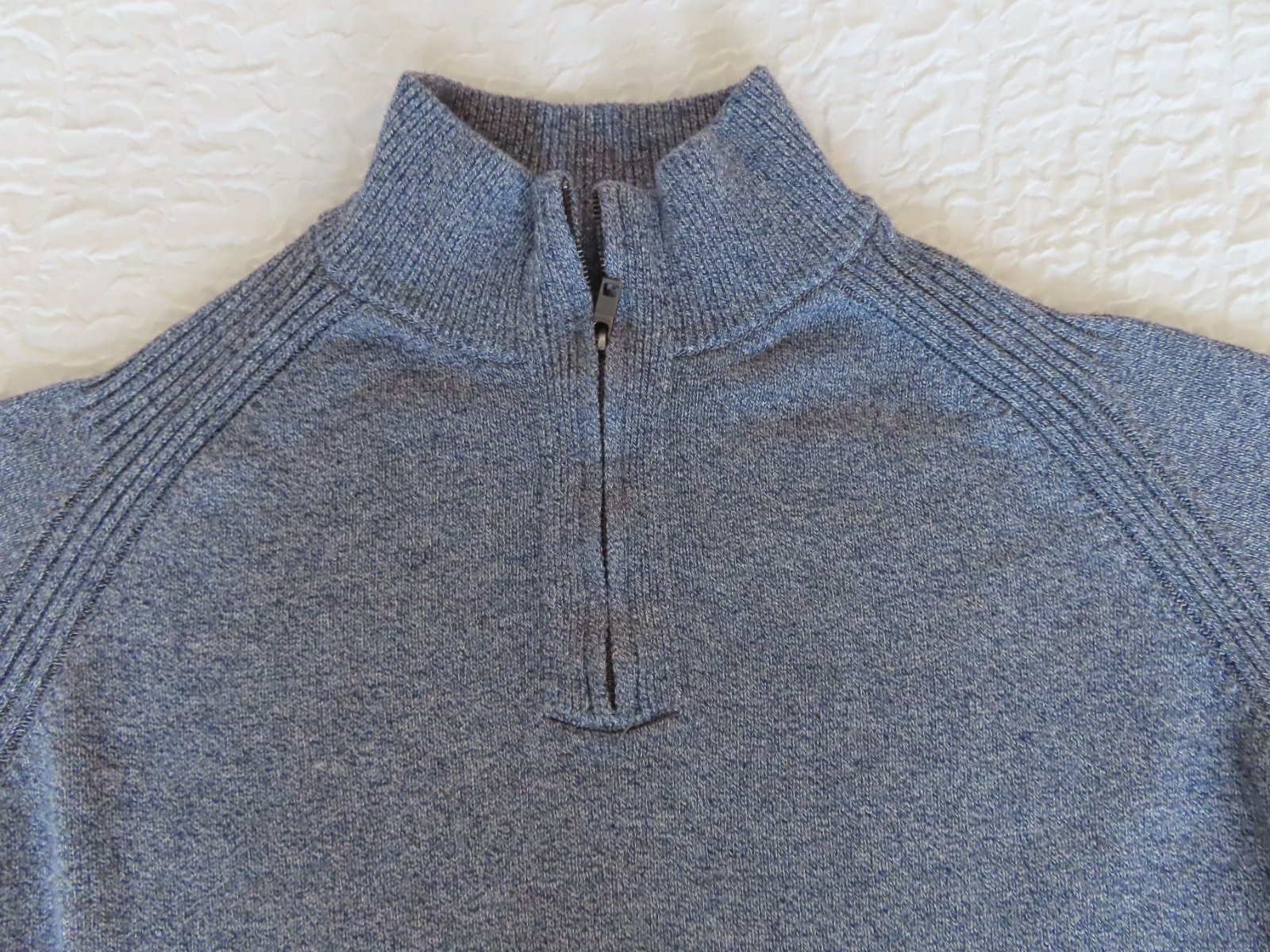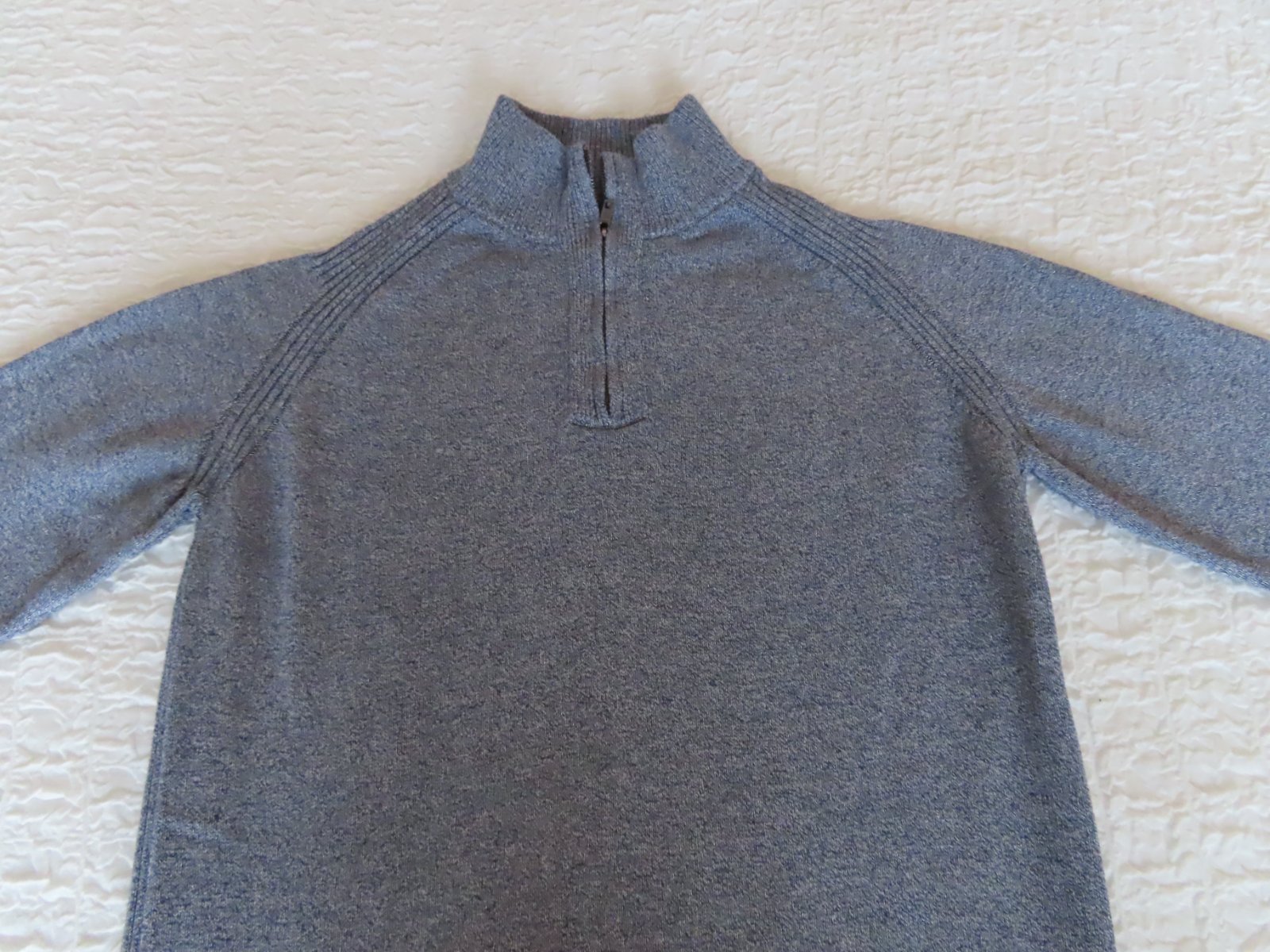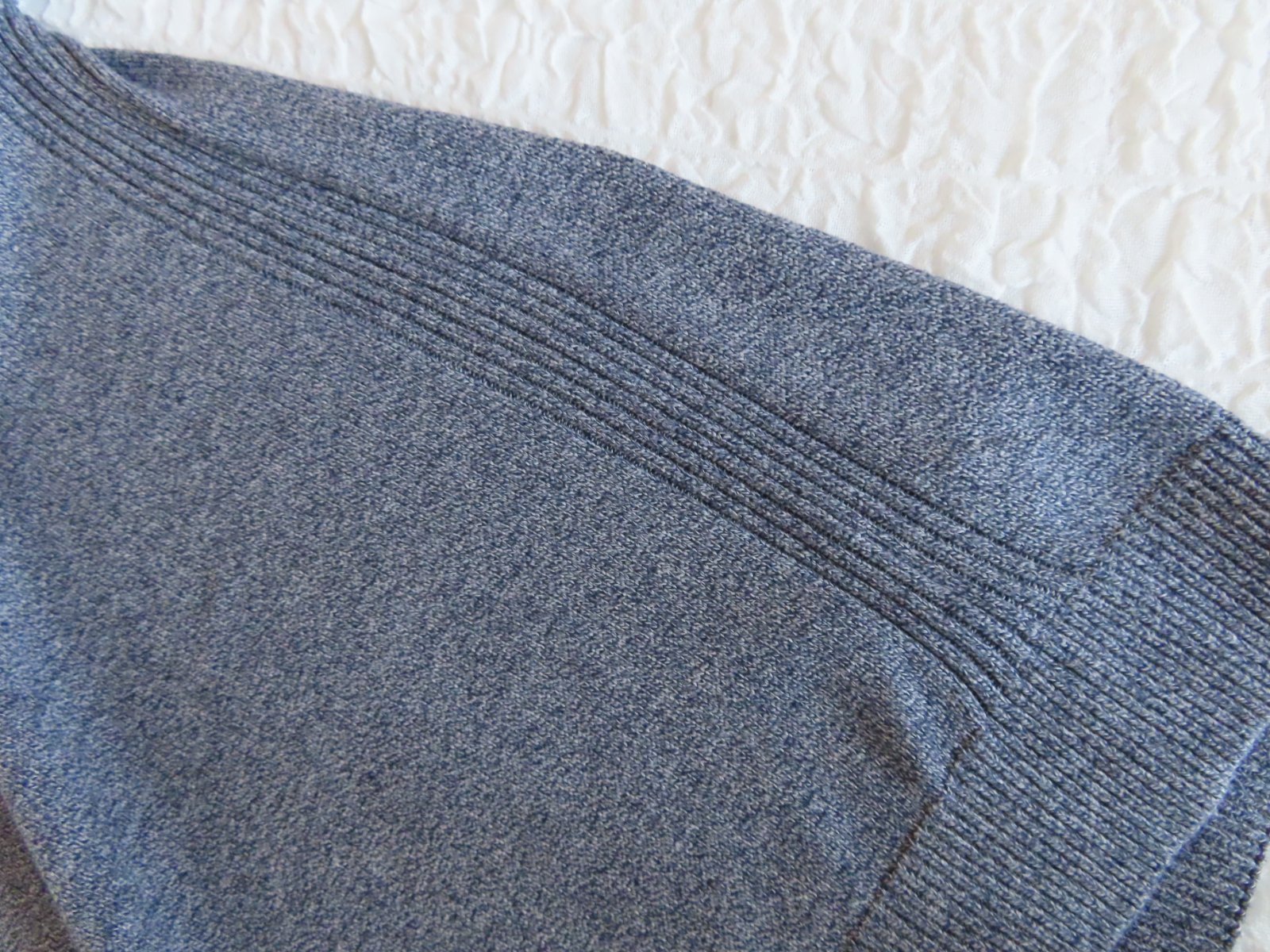 Šedo-modrý melírovaný pulóver Globe Trotter, veľkosť označená XXXL, sedí na XXL - tu sú rozmery: dĺžka 71cm, pod pazuchami 2x58cm, rukáv je raglánový - od krku 77 a od pazuchy 49cm.