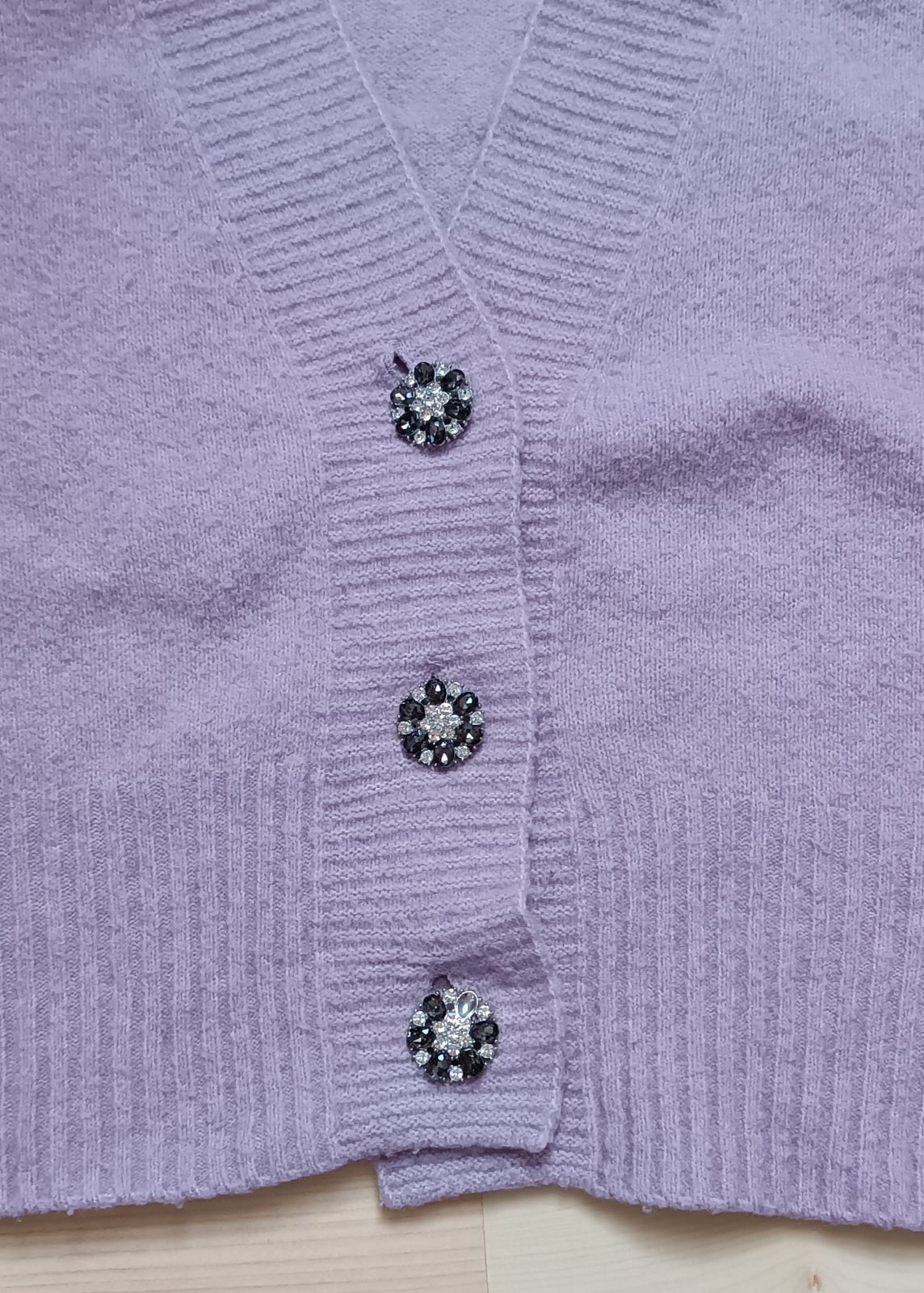 Na spodnom gombíku chýba jeden kamienok.