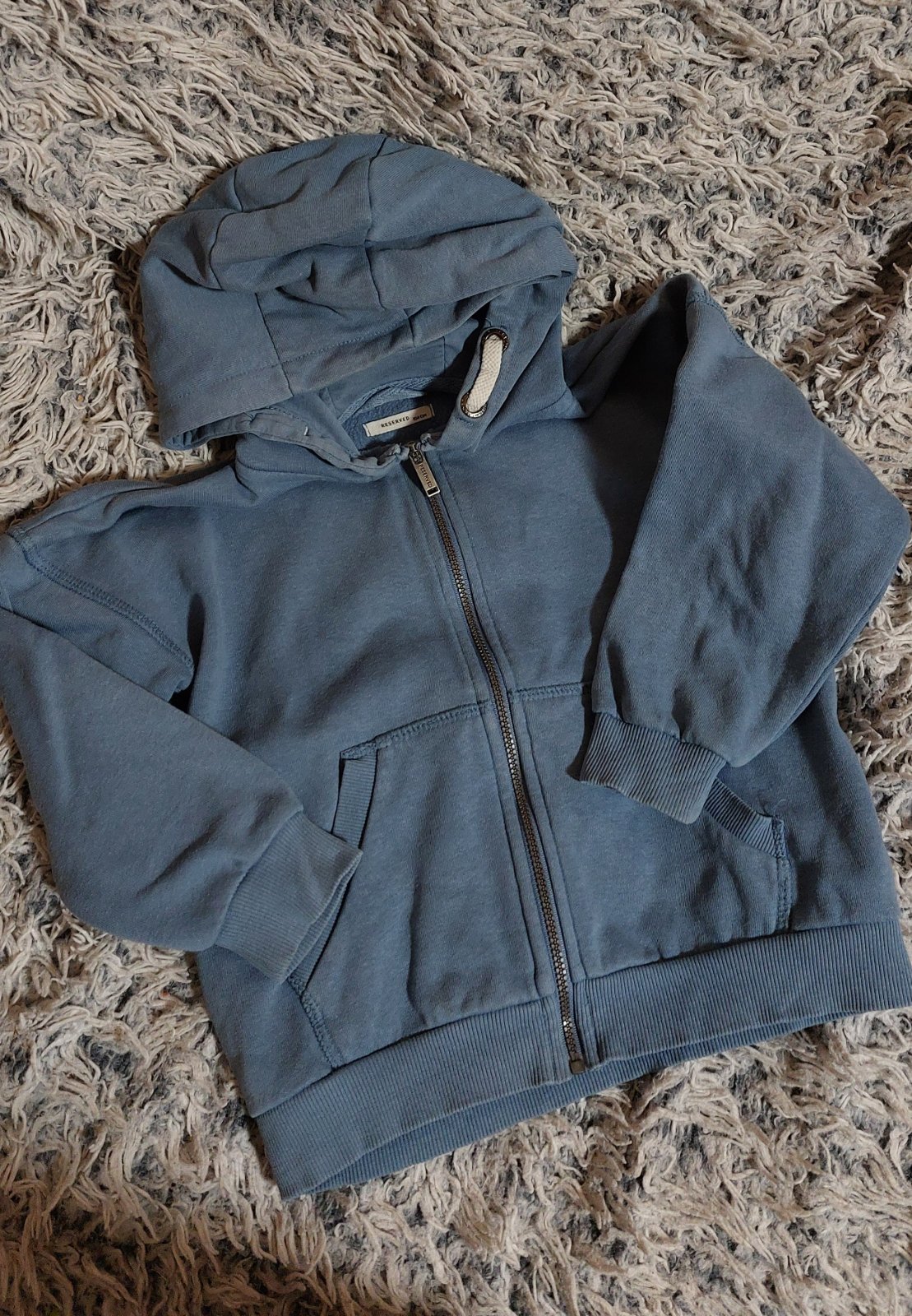 Krásna pasikava mikina v super stave. Velkostne však oveľa menšia ako je na štítku. Mne sedi skôr na rozmedzie 104/110.