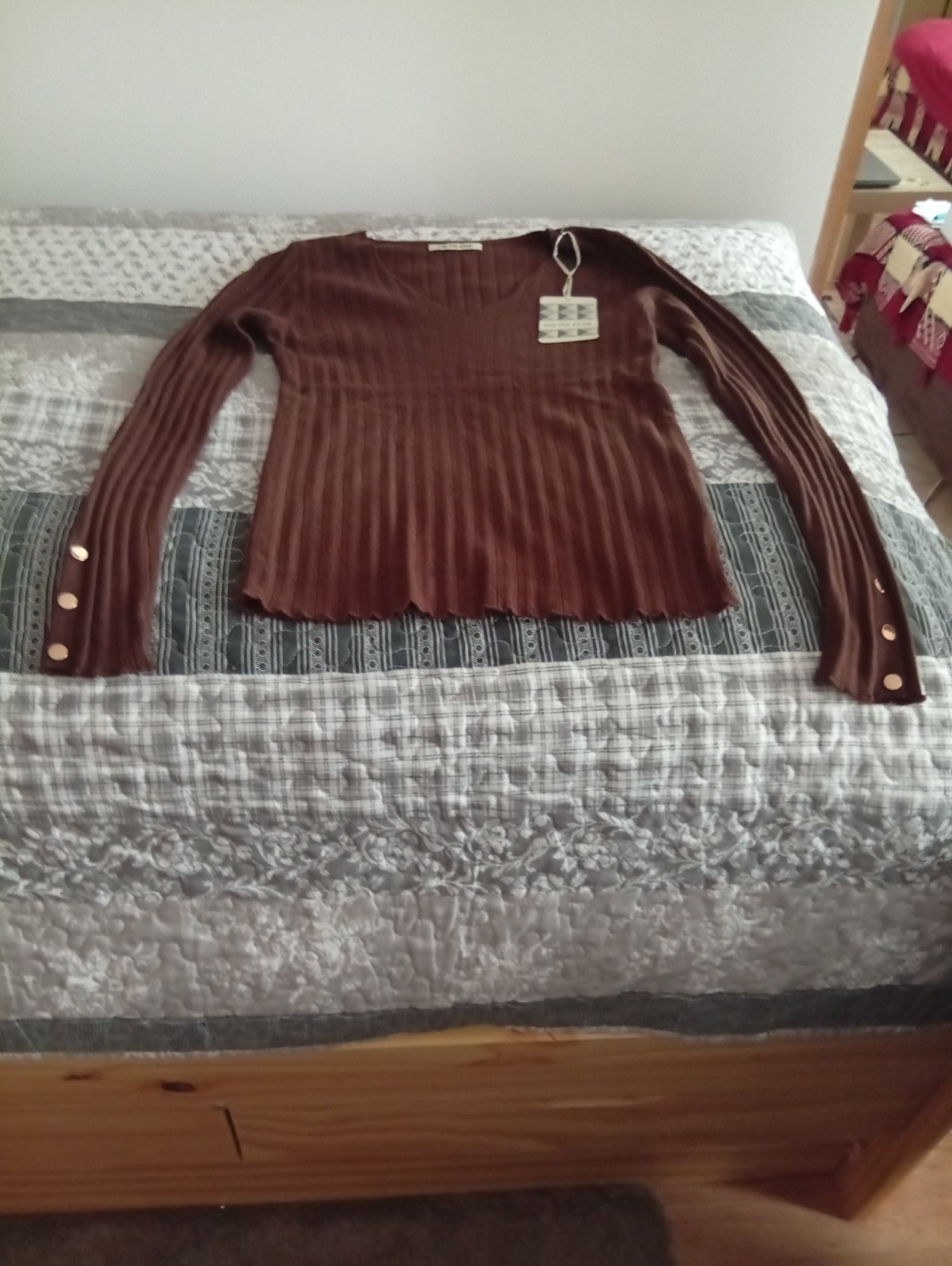 Moderný dámsky sveter s vreckami Veľmi pekne oživí váš outfit. Pekne sadne na akéjkoľvek postave. Veľkosti: S, M, L, XL. Uni prispôsobí sa na postave. Ihneď k odberu.