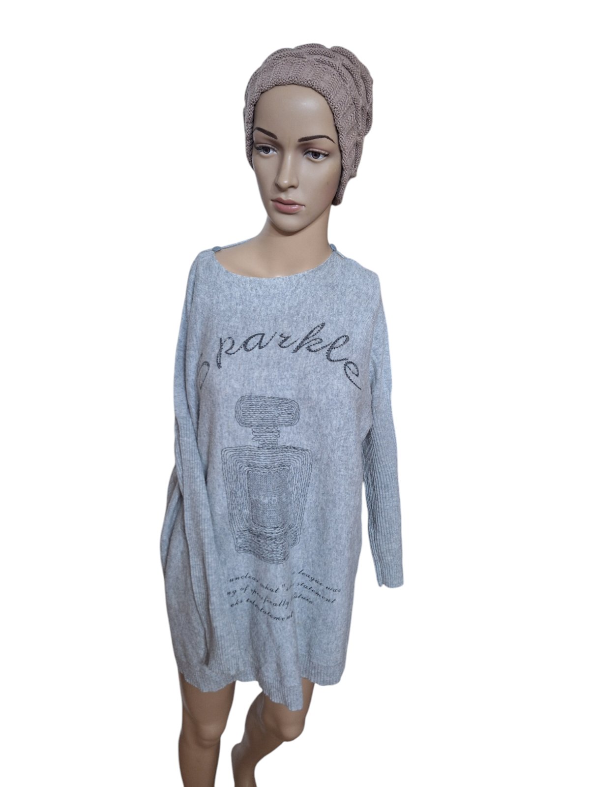 Dámsky pulóver. Dĺžka je 70cm,obvod hrudníka je 122cm a obvod pása je 124cm. Dĺžka rukáva je od krku 65cm. kód 1044