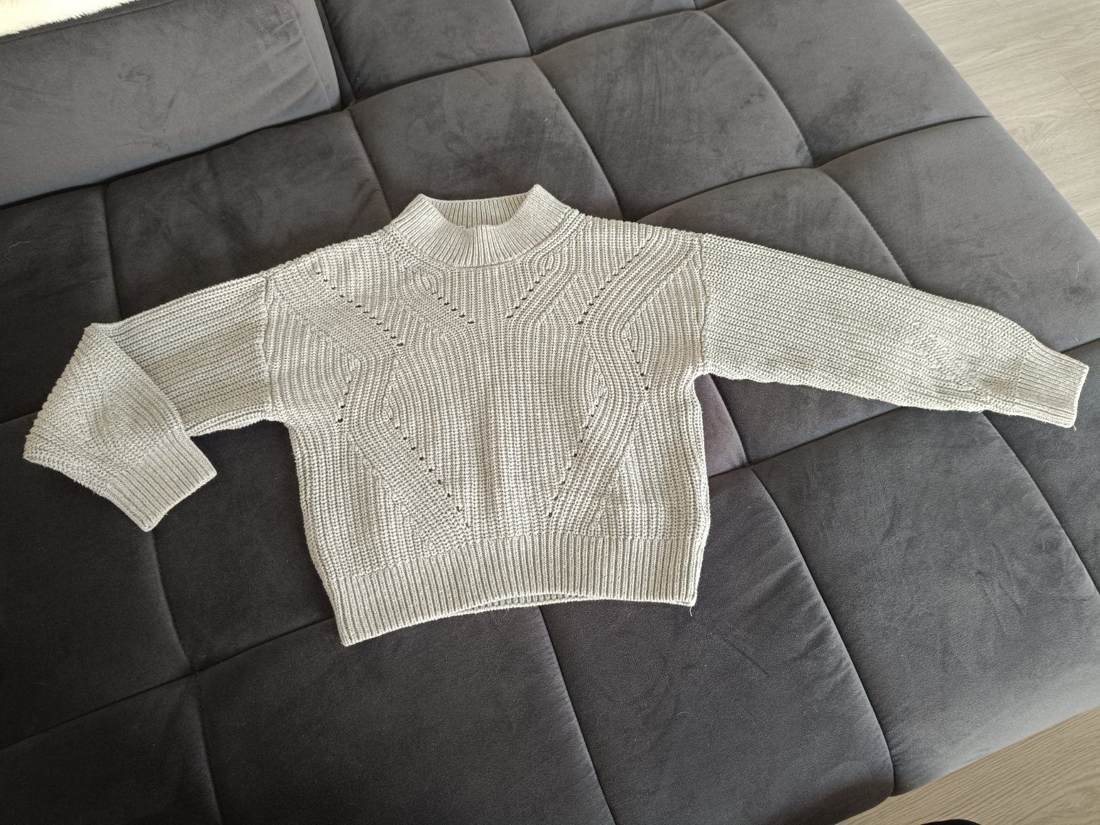 svetlosivý tenký svetrík málo nosený, veľkosť 134/140, tak 9/10 rokov, značka HM, dĺžka 50cm, šírka 40cm pod pazuchami, rukáv od krku 63cm