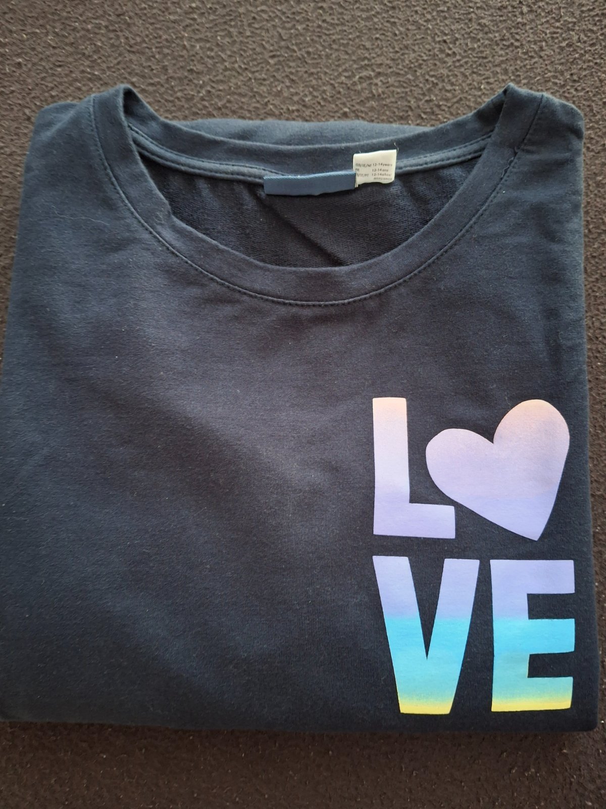 Predám úplne novú ,len opranú ,nenosenú, dievčenskú predĺženú mikinu bez kapucne, 158-164, na 12-14 rokov, PEPPERTS , predný napis LOVE, 95%bavlna, 5%elastan.