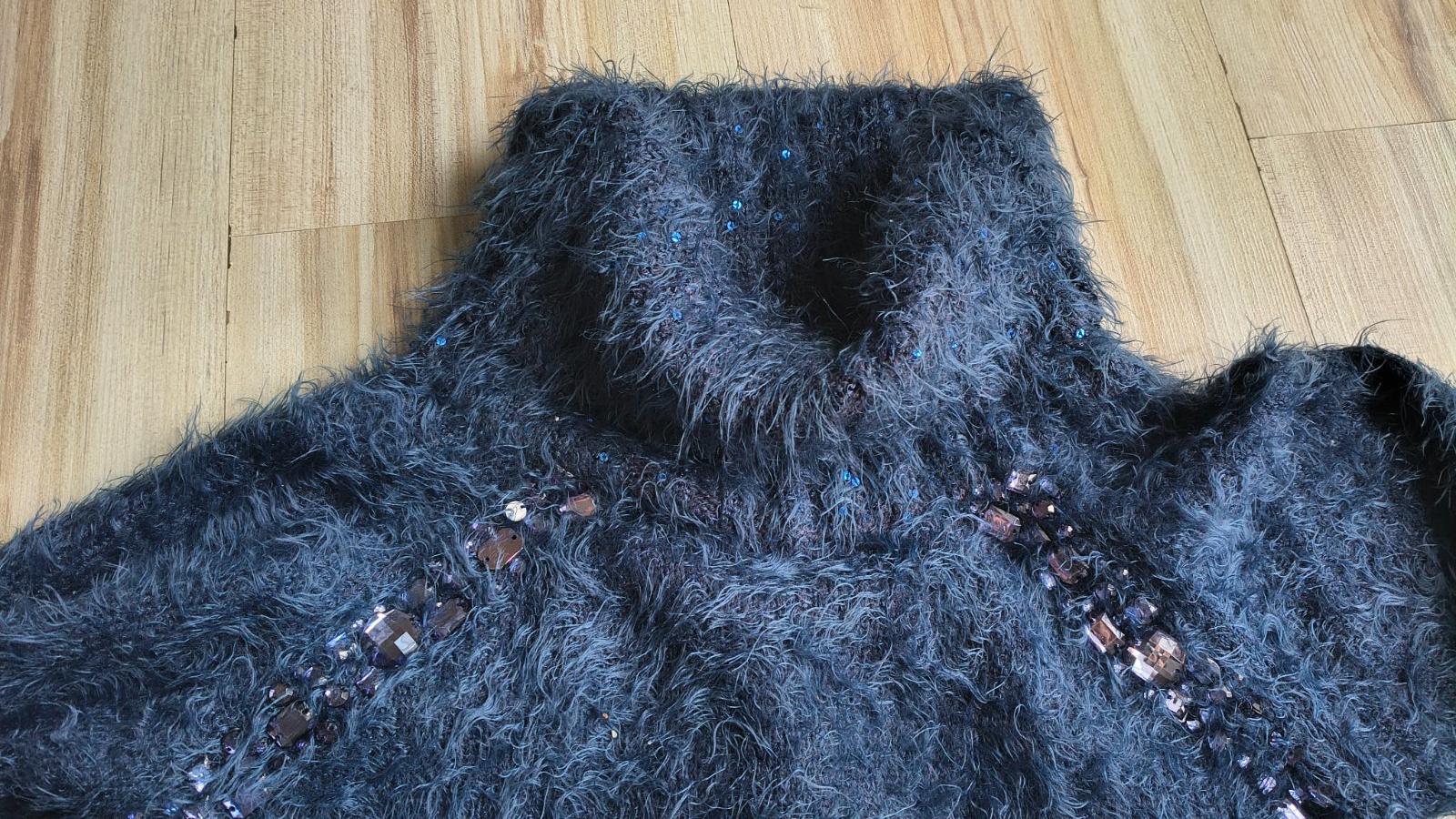 Predám málo nosený sveter - rolák, kratšieho strihu, ako crop top, ozdobený flitrami a kameňmi.