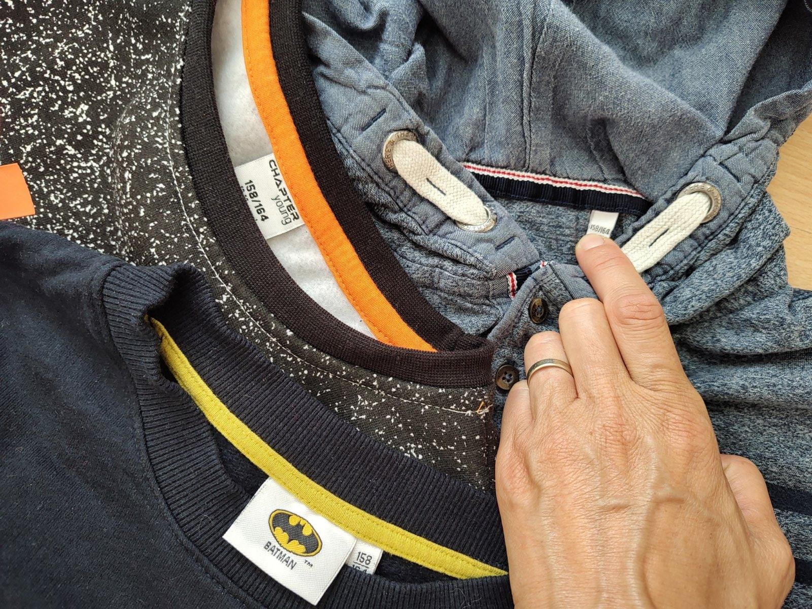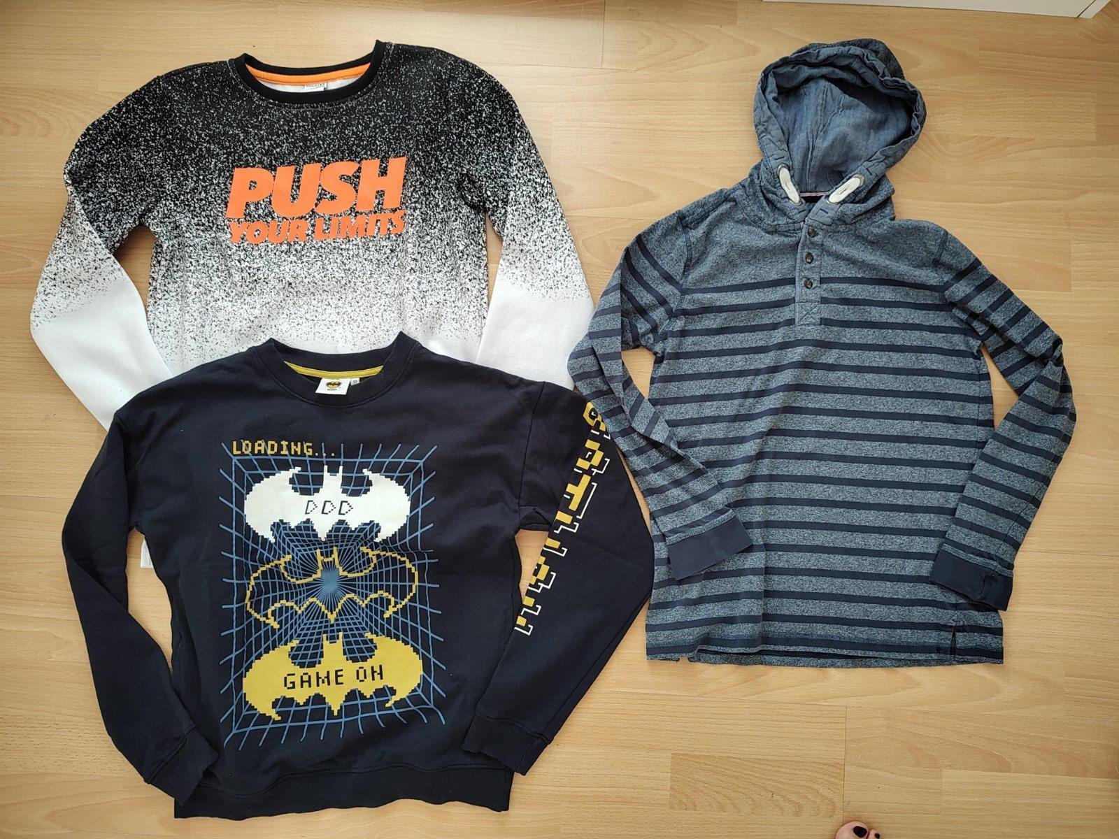 tri rôzne nenosené mikiny. Dve sú hrubšie. Prúžkovaná je s kapucňou. cena spolu