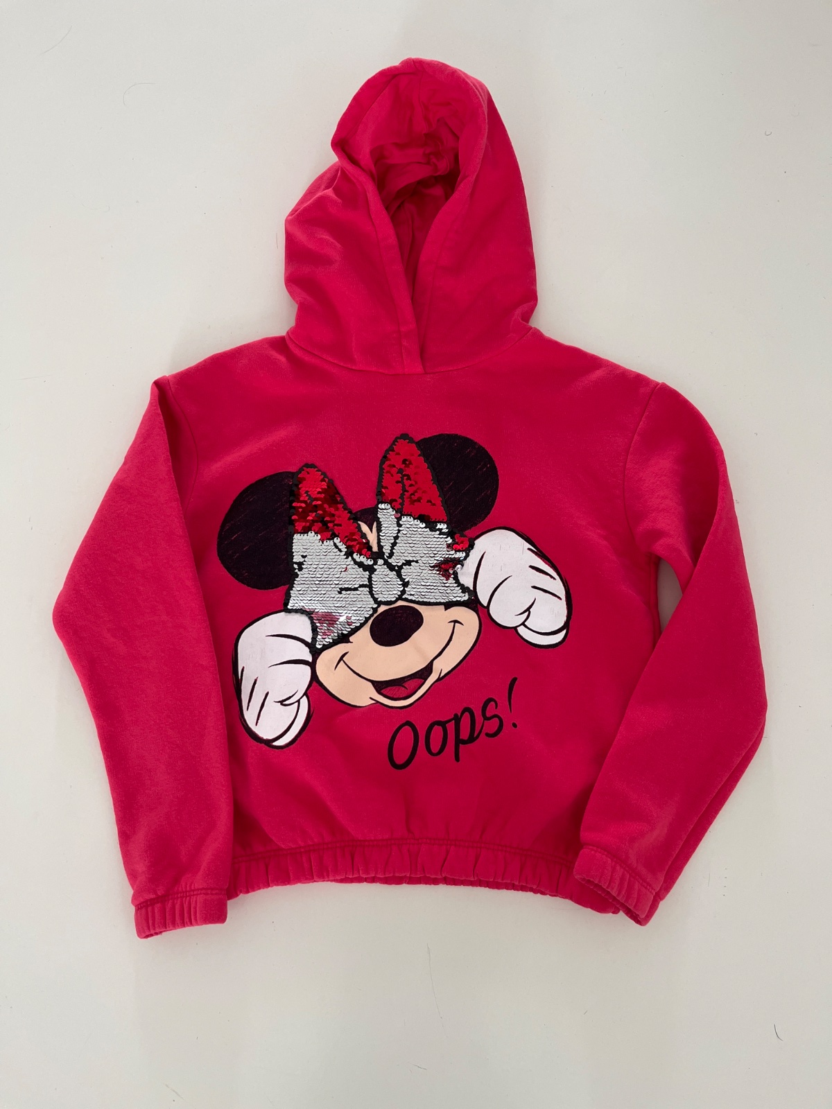 Roztomilá bavlnená mikina s Minnie, kupované nové, málo nosené, bez poskodenia. Veľkosť sa uvádza 130. rozmery: dlzka od ramena 46 cm, pod pazuskami 36 cm, rukáv od krku51 cm, od ramena 42 cm.