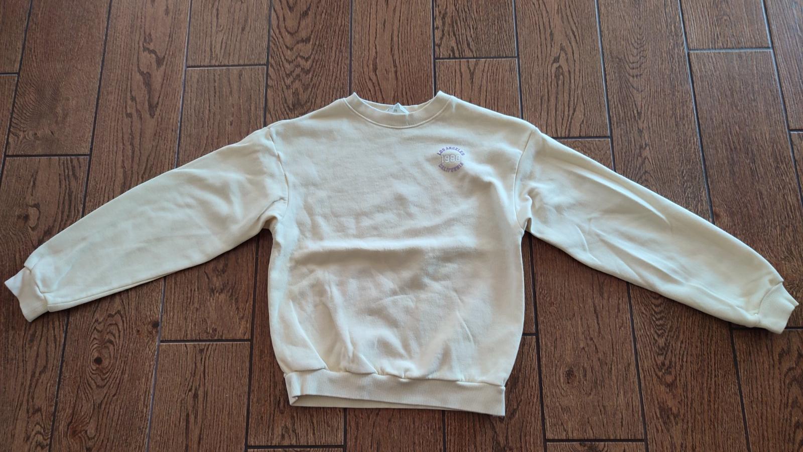Hrubšia oversize mikina, veľmi dobrý nosený stav, žiadne poškodenia. Dvojčíslo 146/152 - dĺžka 50 cm, šírka 57 cm, rukáv od krku 64 cm.