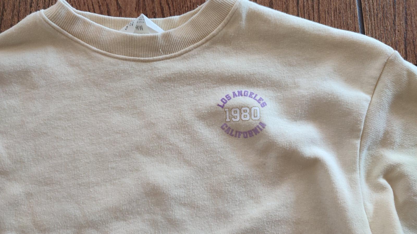 Jednoduchá tenšia mikinka z kolekcie H&M basic, bledožltá farba s dvoma bielymi pruhmi. Veľmi príjemný materiál - tenký a ľahký (100 % bavlna). Dĺžka 42 cm, šírka cez hrudník cca 46 cm, dĺžka rukáv...