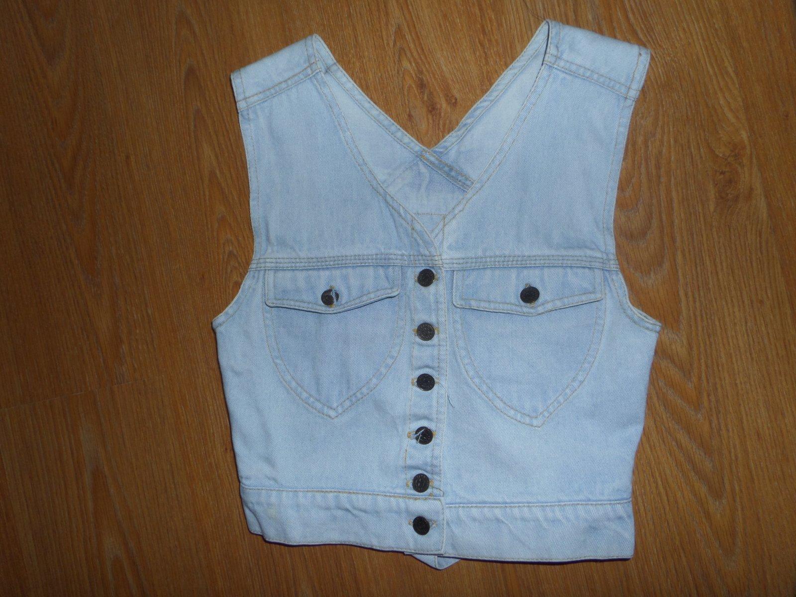 Predám peknú riflovú vestičku, asi raz oblečenú, bez poškodenia, veľkosť M, cena 3 eurá plus poštovné.