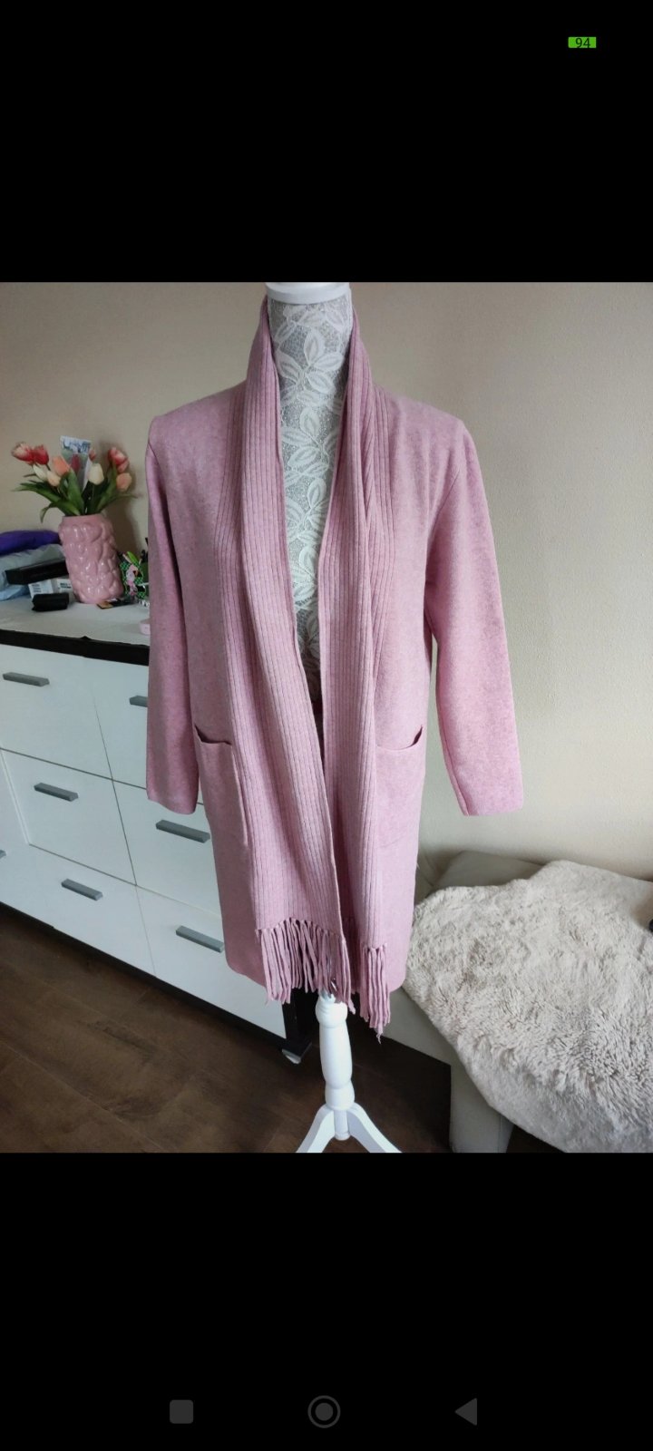 krásny väčší oversize pulovrik predlženého strihu v jemnej ružovej farbe Vyrobené v Taliansku 74% acryl 26% polyester veľkosť UNI, pulover sedií na všetky veľkosti od S ako oversize až po XXL dlžka...