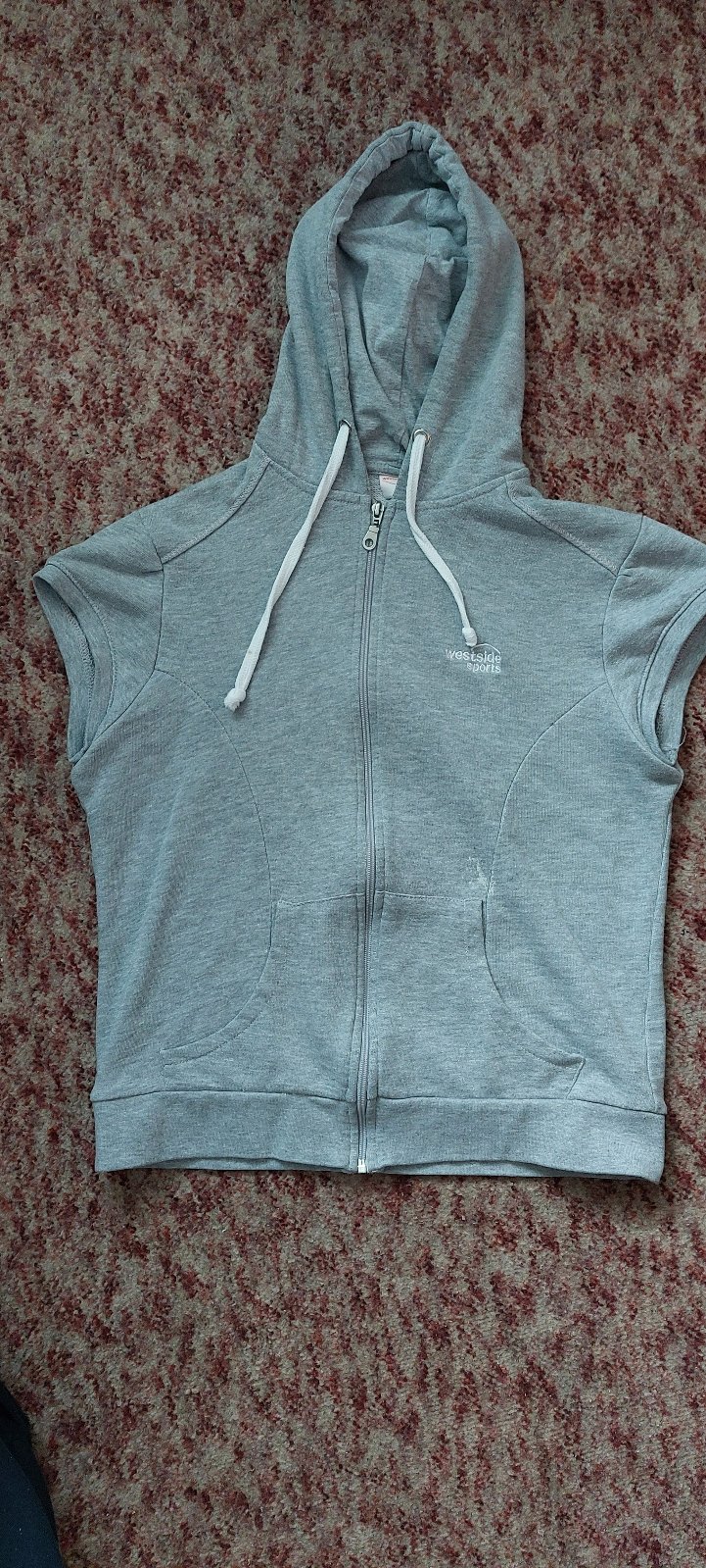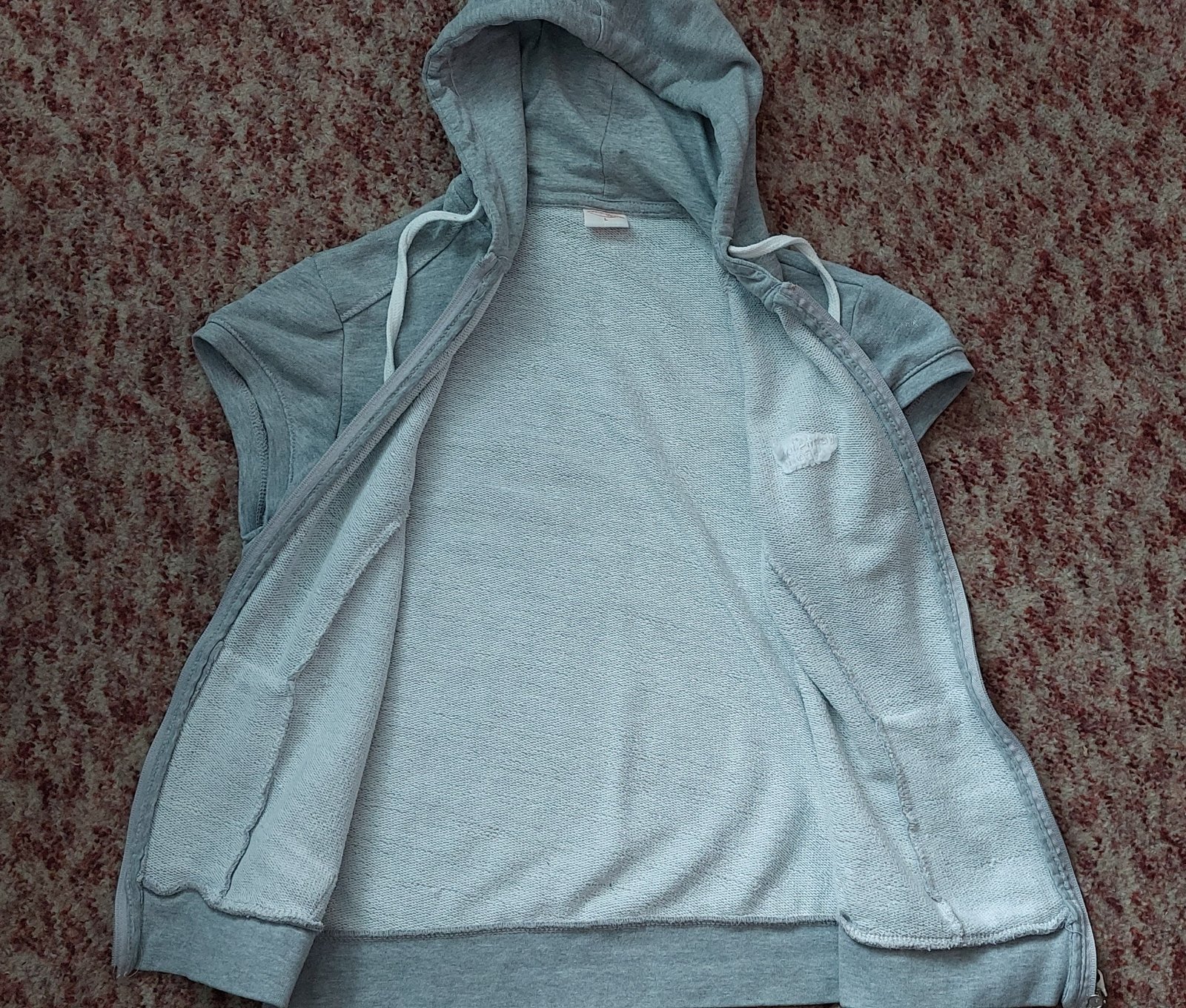 Sivá mikinová vesta s kapucňou na zips