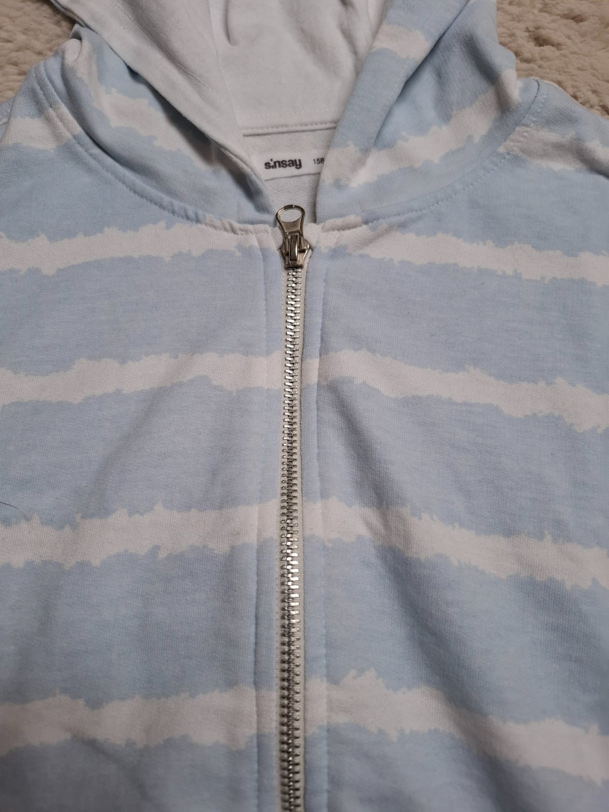 1 x oblecena a vyprana, druhá nenosena, nevidno v nich rozdiel, zn. Sinsay, veľkosť 158, tenšie mikiny, cena spolu 7 Eur, samostatne 3,50 Eur
