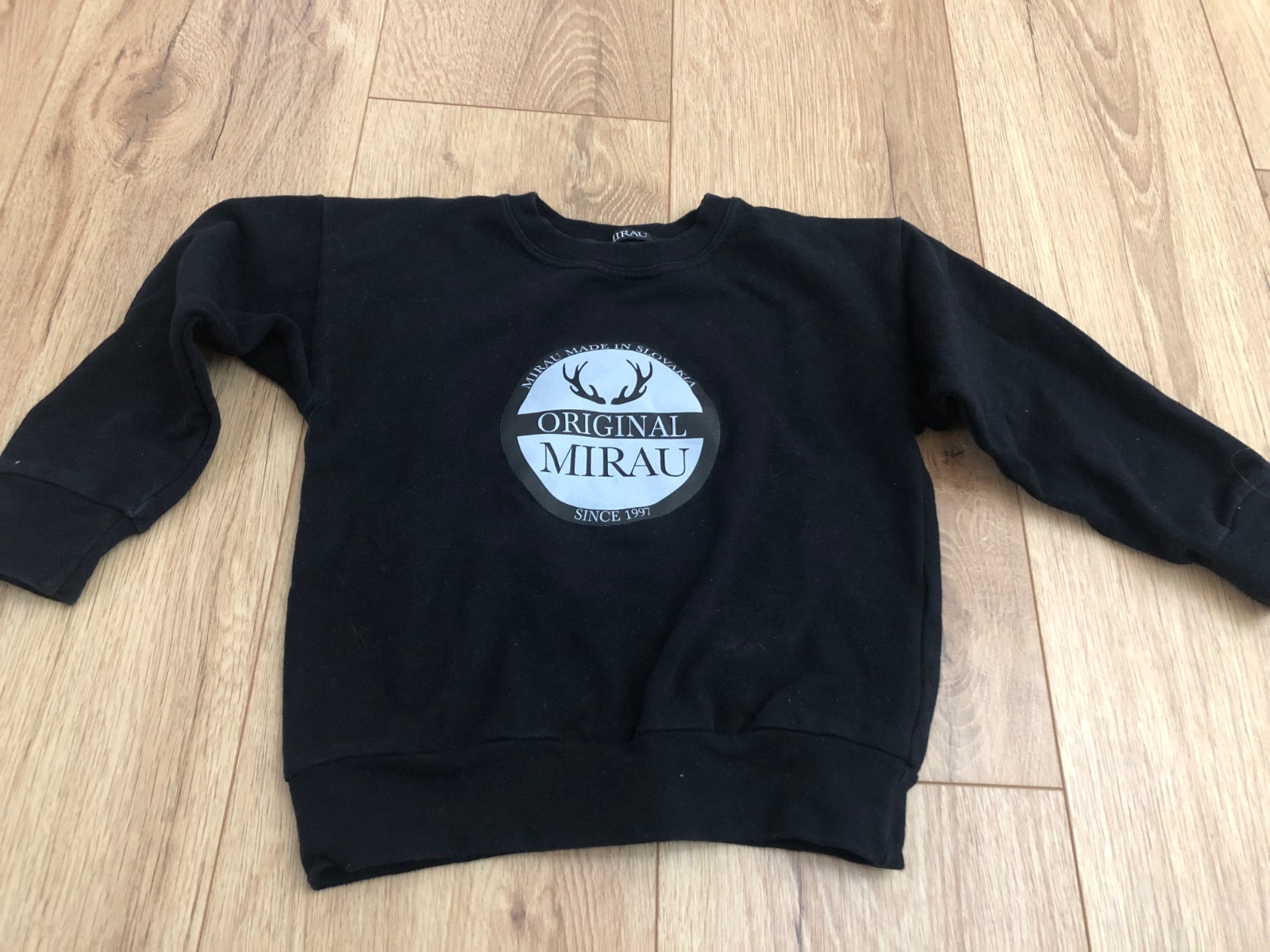 Čierna mikina Mirau velk.98, dĺžka 36cm, šírka pod pazuchami 33cm, dĺžka rukáva od ramena 29cm