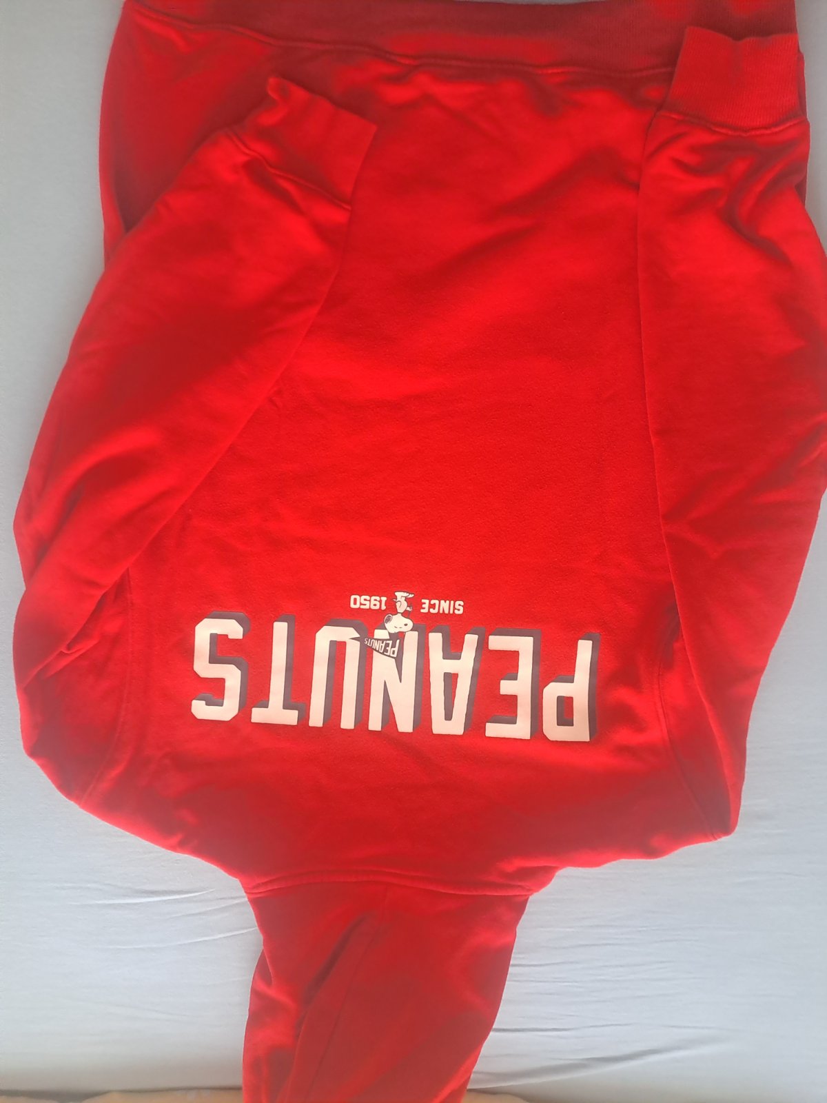 Veľmi dobrý stav! Dámska červená mikina s potlačou, tenká, okrúhly výstrih, materiál 100% bavlna,manžeta95%bavlna 5%elastan. Veľkosť cca S. ROZMERY: dĺžka meraná vzadu:58cm,dĺžka rukáv od krku:66,...