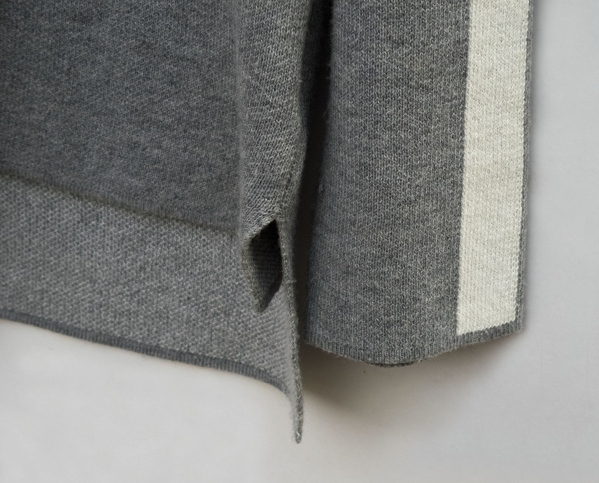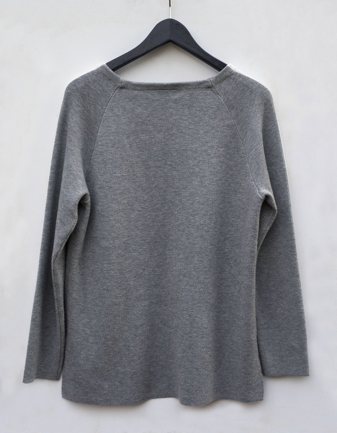 Šedo-biely pulóver s lodičkovým výstrihom