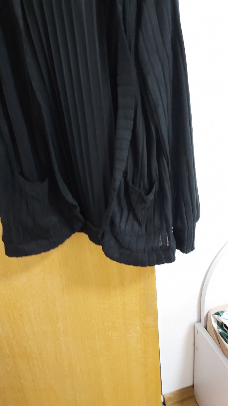 Strapcovy kardigan minimum noseny ziadne poskodenia. Velkost S, znacka AMISU.Rukav od krku 73 cm, od ramena 61 cm. Dlzka prednaj casti najdlhsej 89cm potom uz je dlzka tak 71 cm cize iba predna ca...